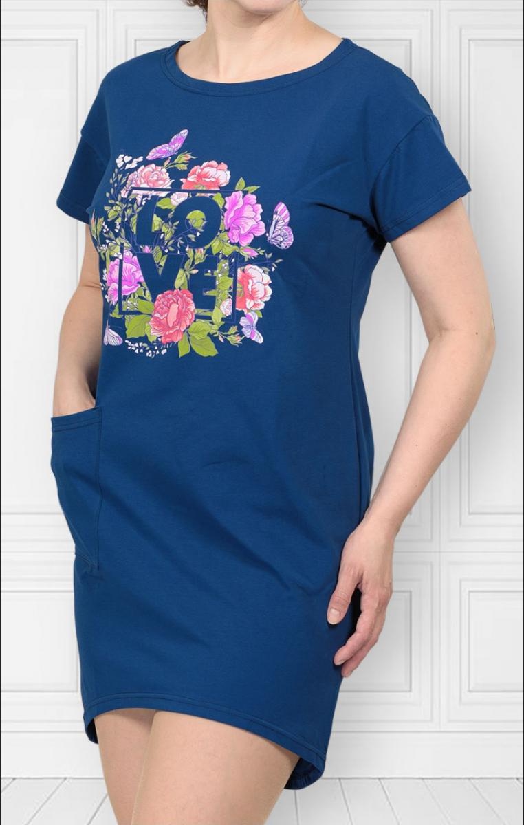 Платье с карманом, принт, индиго (467-3) — это идеальный выбор для стильных и современных женщин. Изготовленное из высококачественной кулирки с лайкрой, оно обеспечивает комфорт и свободу движений на протяжении всего дня. Это платье имеет спущенные рукава и накладной карман, что придаёт ему непринуждённый и актуальный вид. Низ платья выполнен в фигурной форме, а спинка немного длиннее, что добавляет оригинальности и элегантности. Преимущества:
