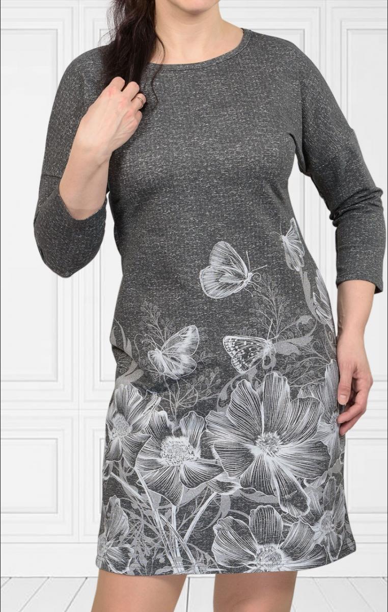 Платье футер с лайкрой, принт, берёзка - серый, меланжированный (448-1)
