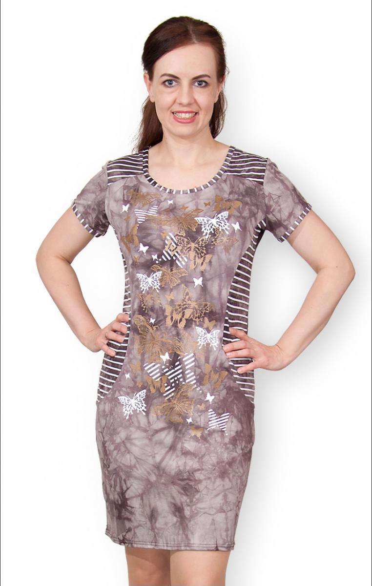 Платье вискозное - батик, принт "Бабочки", сепия (353-2)