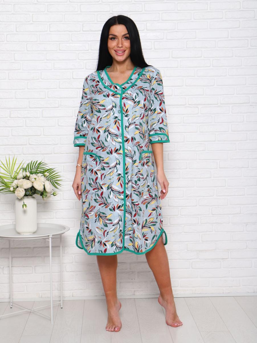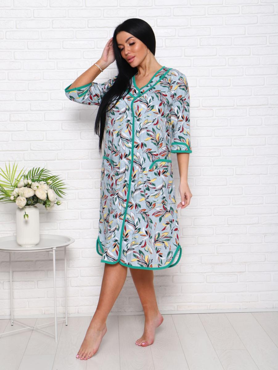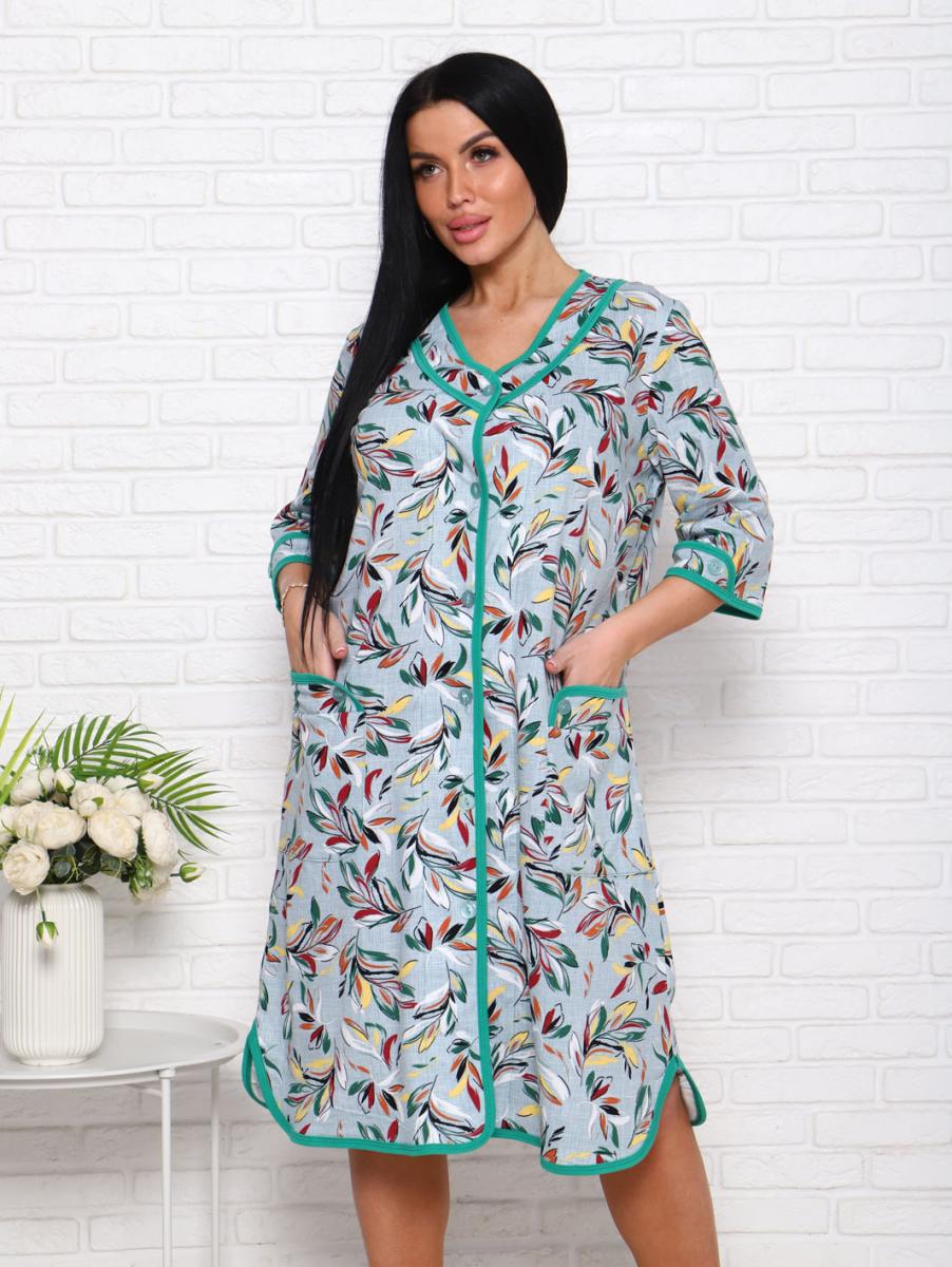 Халат женский на пуговицах с карманами, фисташковый (958-4)