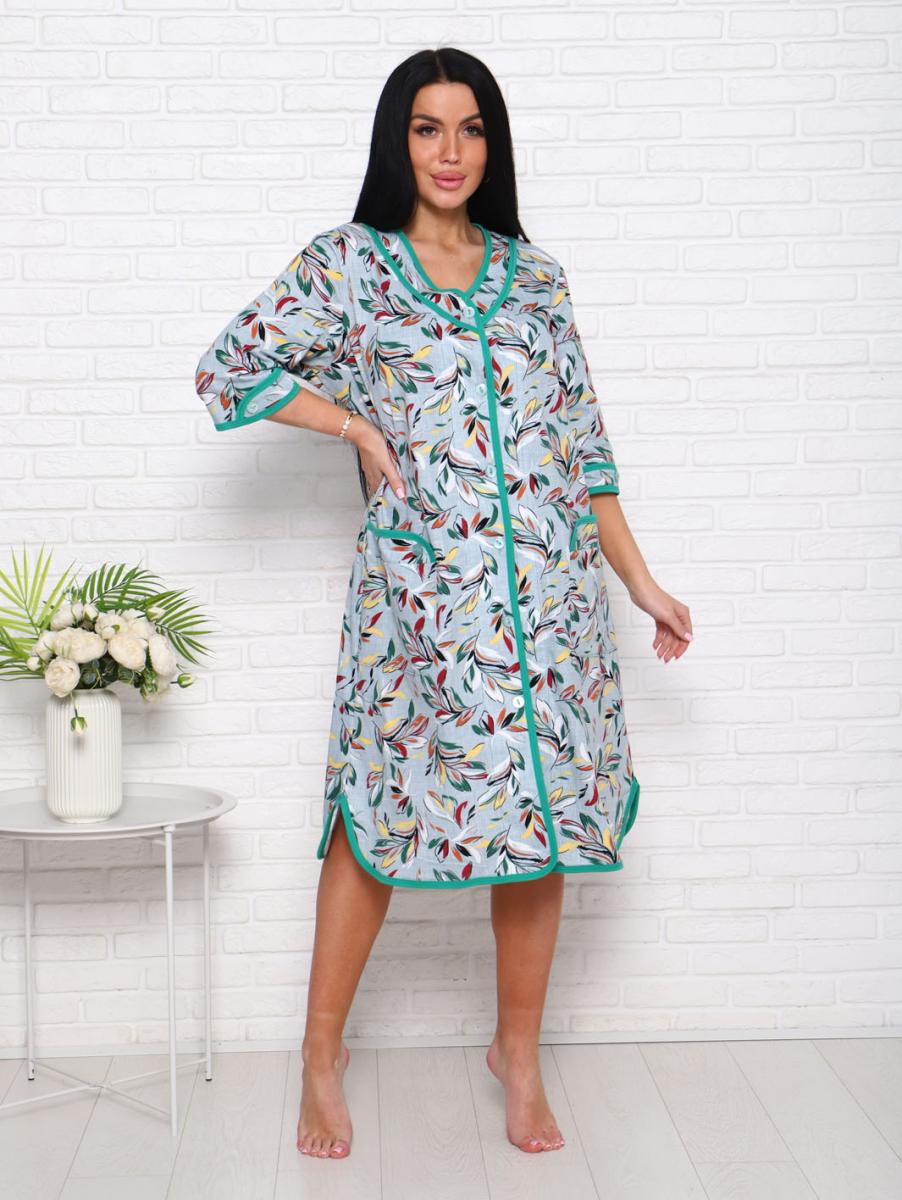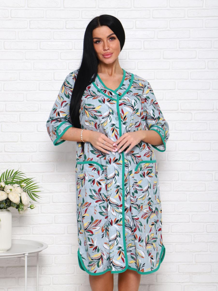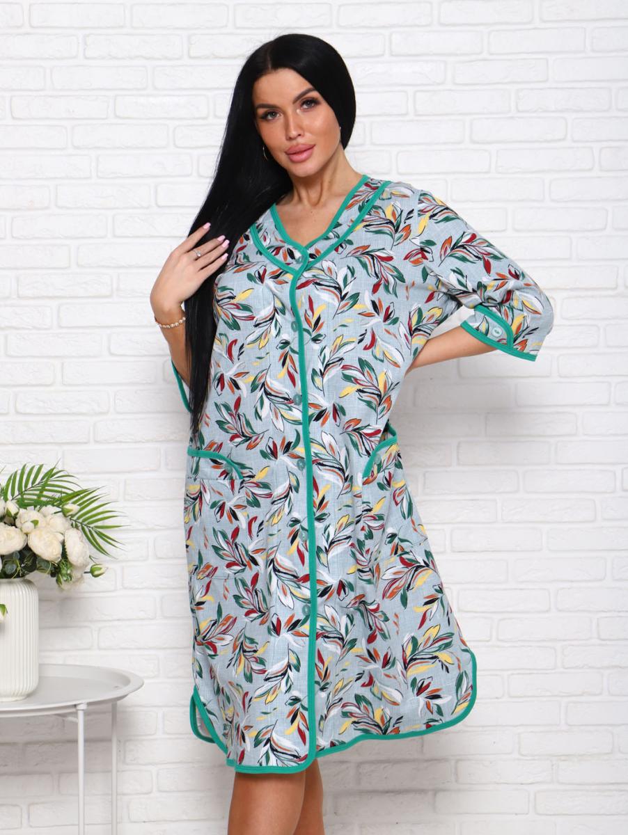 Халат женский на пуговицах с карманами, фисташковый (958-4)