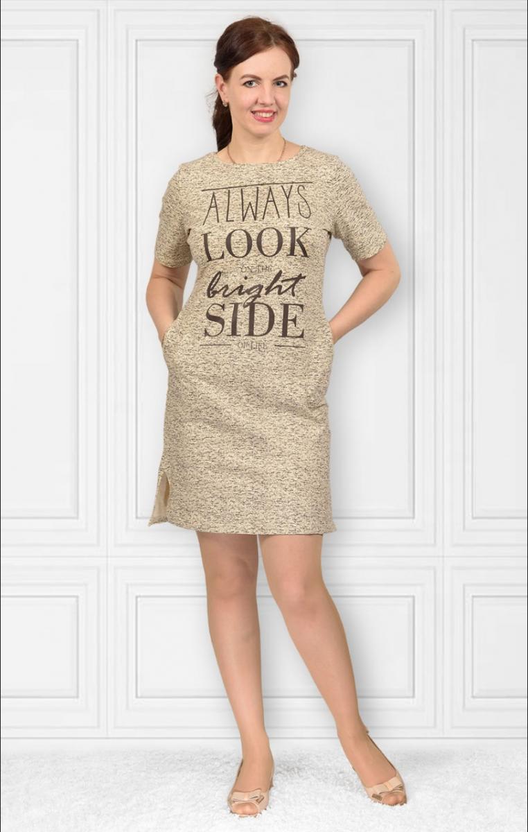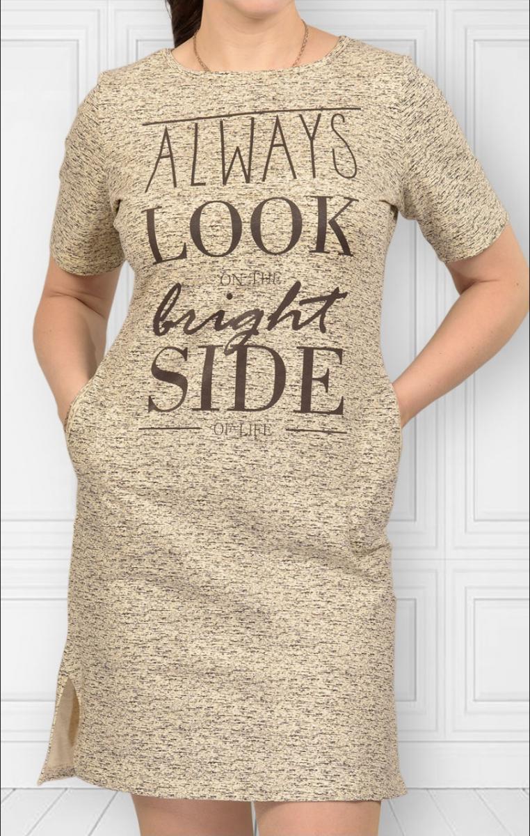 Платье футер с лайкрой, принт, берёзка - экрю (322-9)