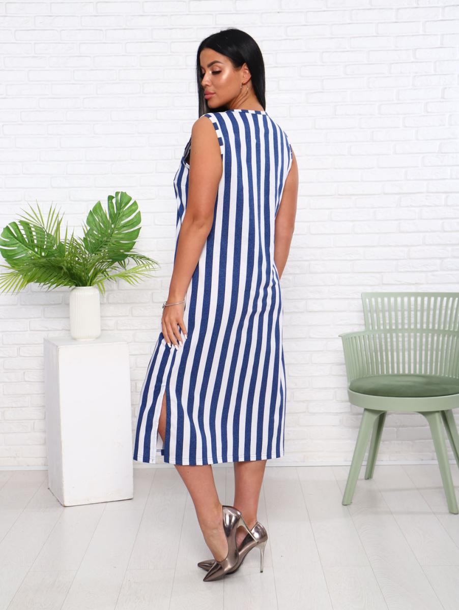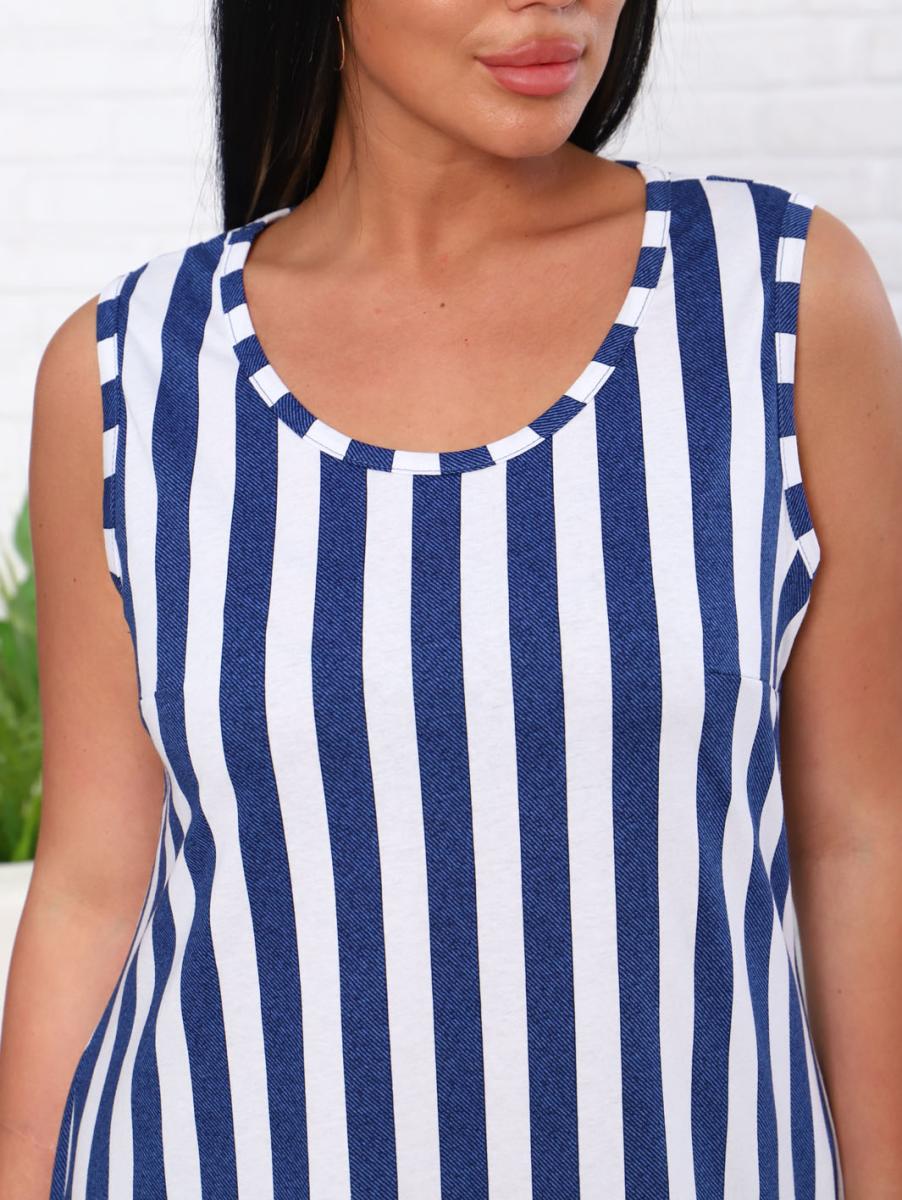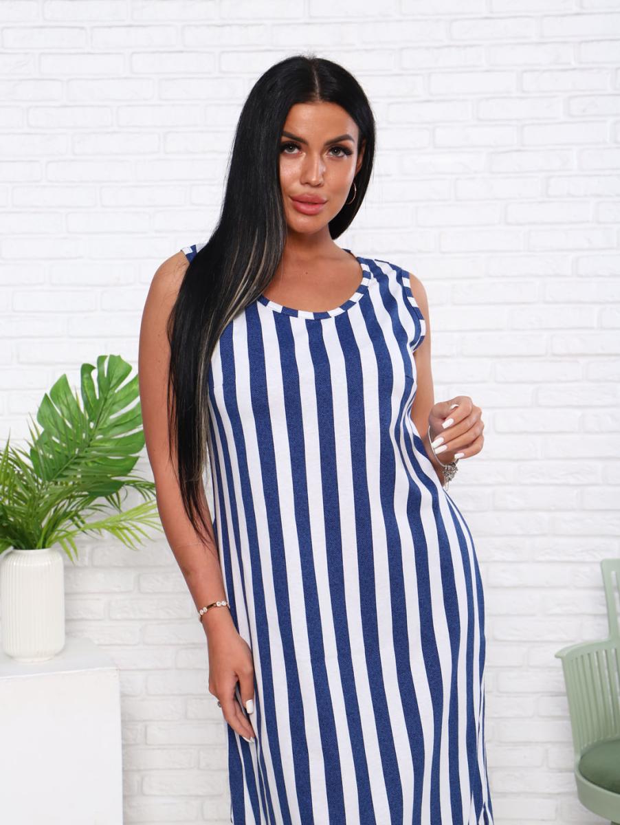 Сарафан в стильную полоску — идеальный выбор для теплых дней! Изготовленный из легкого и приятного на ощупь трикотажного полотна (кулирка), этот сарафан обеспечит вам максимальный комфорт. Прямой, свободный крой и выточки по линии груди делают его не только удобным, но и элегантным. Снизу по боковым швам предусмотрены разрезы, которые добавляют изюминку и обеспечивают свободу движений. Преимущества данного сарафана:
