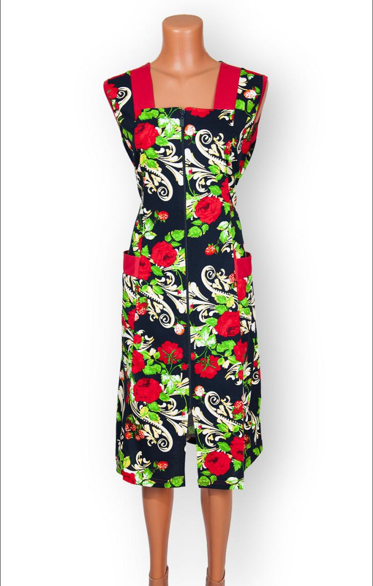 Сарафан на молнии с карманами — идеальный выбор для стильных и современных женщин. Изготовленный из 100% хлопка, этот сарафан дарит непревзойденный комфорт и воздухопроницаемость, что делает его незаменимым в жаркие дни. Яркий дизайн с красными розами на темном фоне добавляет нотку романтики и элегантности, а удобные карманы позволяют всегда иметь под рукой необходимые мелочи. Преимущества данного сарафана: