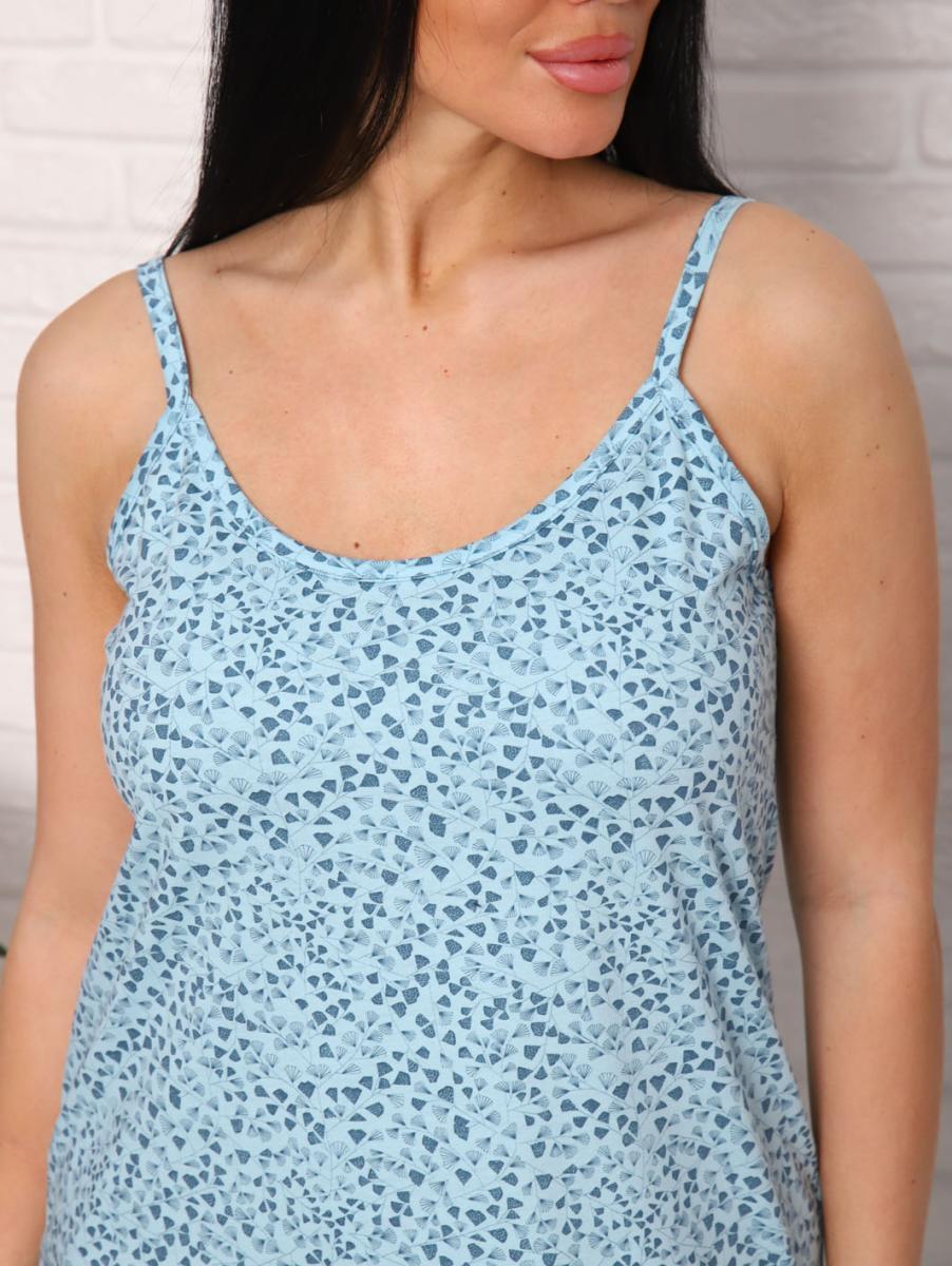 Эта женская сорочка на бретелях выполнена из мягкой и легкой кулирки, что делает её идеальным выбором для комфортного сна. Ментоловый оттенок придаёт изделию свежесть и нежность, а волан по низу добавляет изящества и романтичности. Сорочка прекрасно облегает фигуру, не сковывая движений, и подходит для тёплых ночей. Преимущества:
