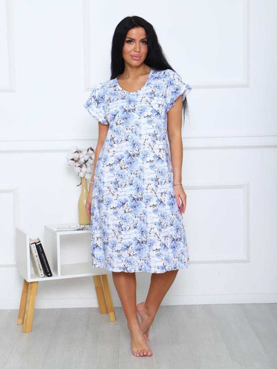 Эта женская ночная сорочка в нежном голубом цвете станет идеальным спутником для уютных вечеров. Изготовленная из кулирки двойного крашения, она обеспечивает невероятный комфорт и приятные ощущения на коже благодаря 100% хлопковому составу.