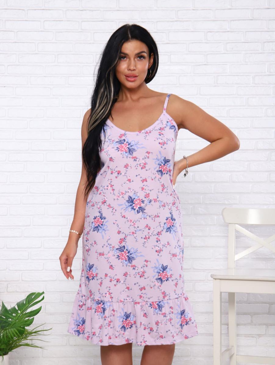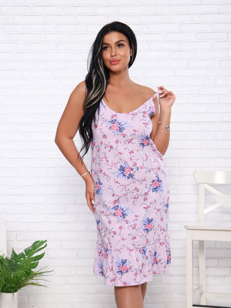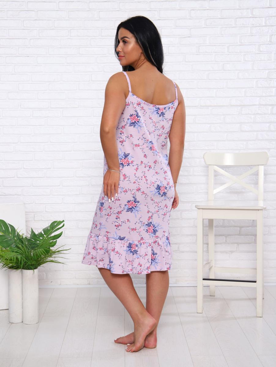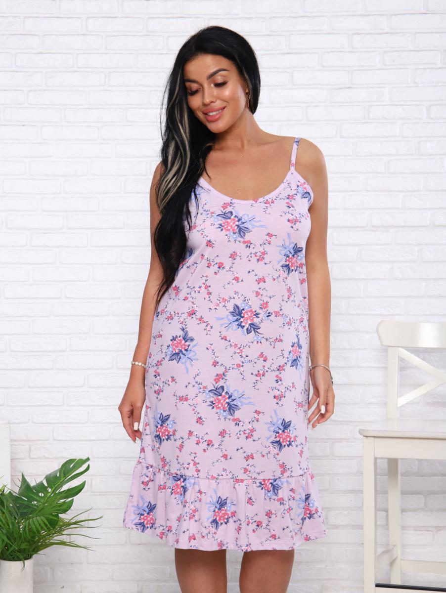 Эта женская ночная сорочка на бретелях станет идеальным выбором для комфортного отдыха. Изготовленная из высококачественной кулирки, она обеспечивает приятные ощущения на коже благодаря 100% хлопковому составу. Нежный розовый цвет с изящным цветочным принтом привносит в ваш вечер уют и романтику. По низу сорочки пришит волан, который добавляет легкости и игривости в образ. В числе основных преимуществ: