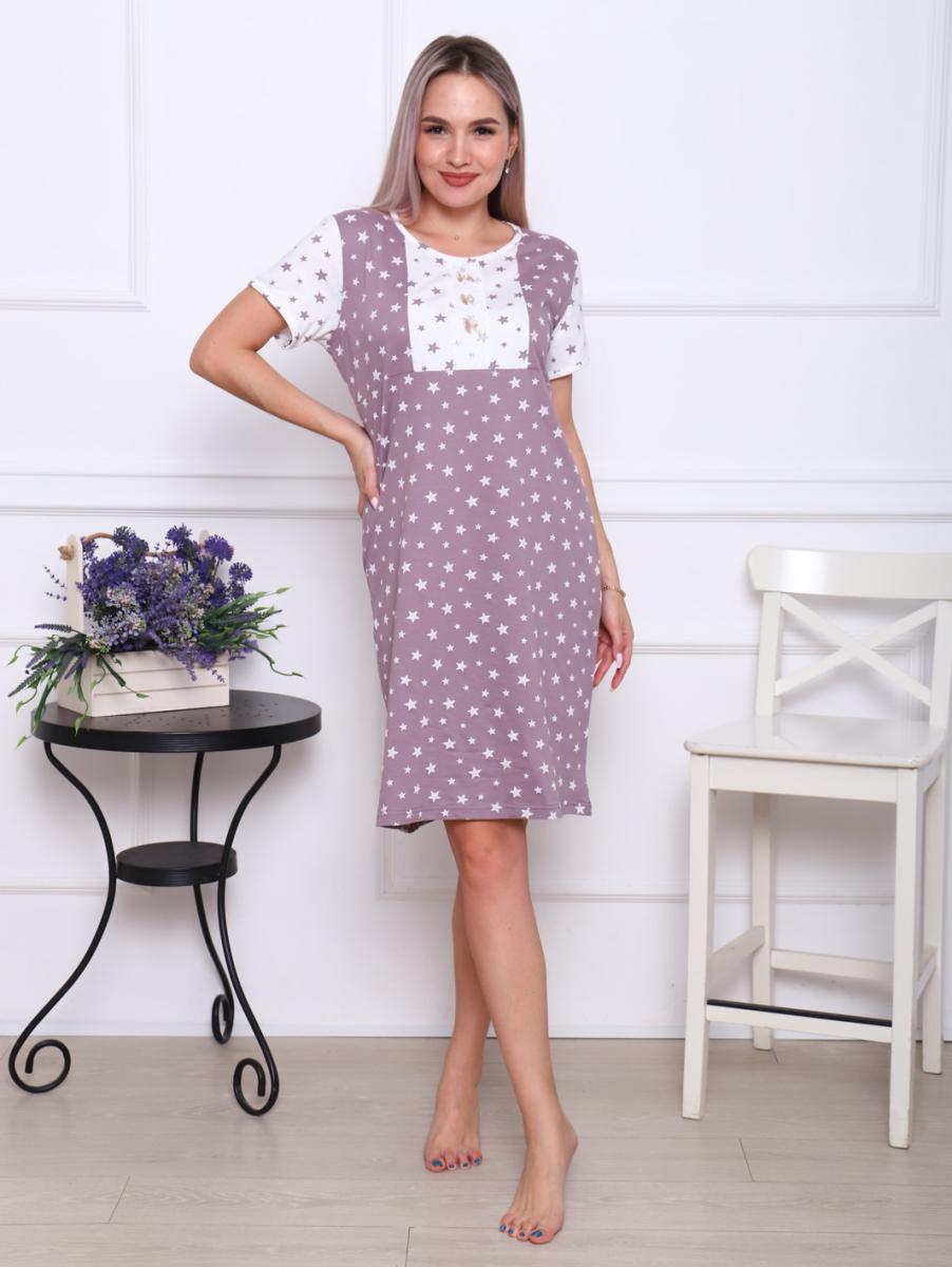 Эта нежная ночная сорочка выполнена из кулирки двойного крашения, что придаёт ей особую мягкость и комфорт. Изготовленная из 100% хлопка, она идеально подходит для приятных ночей и уютных вечеров.