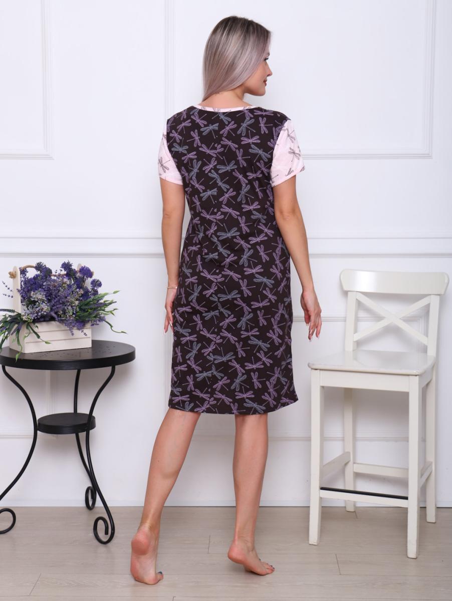 Сорочка с кружевом стрейч, коричневый (897-1)