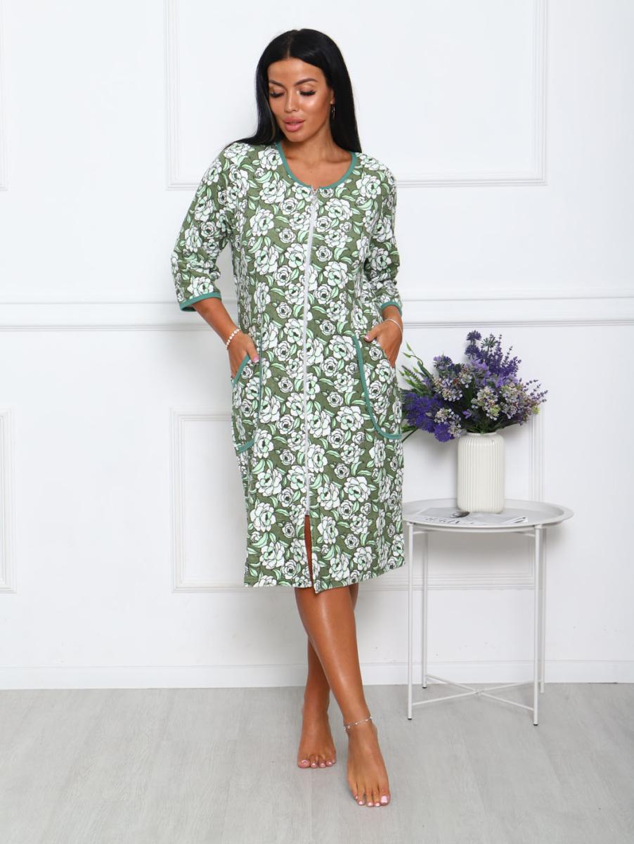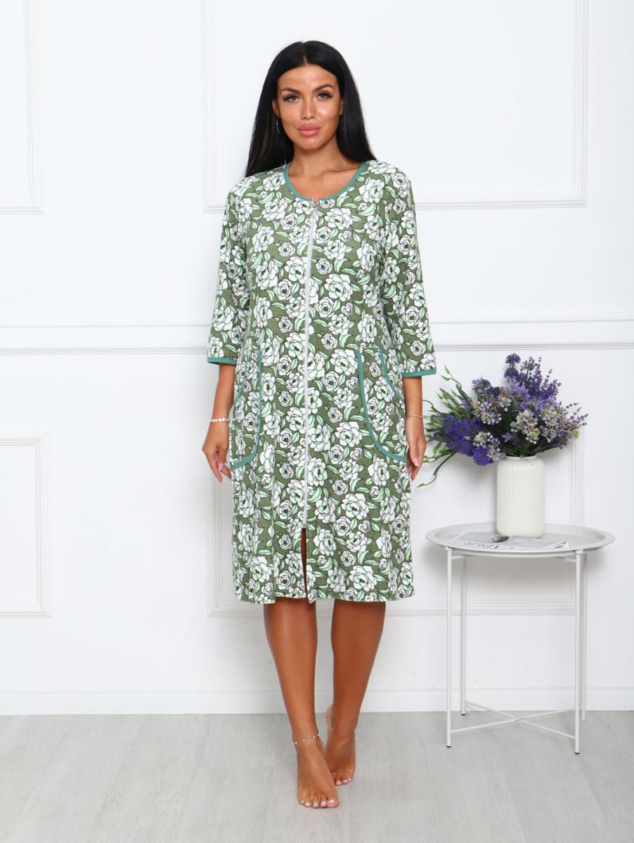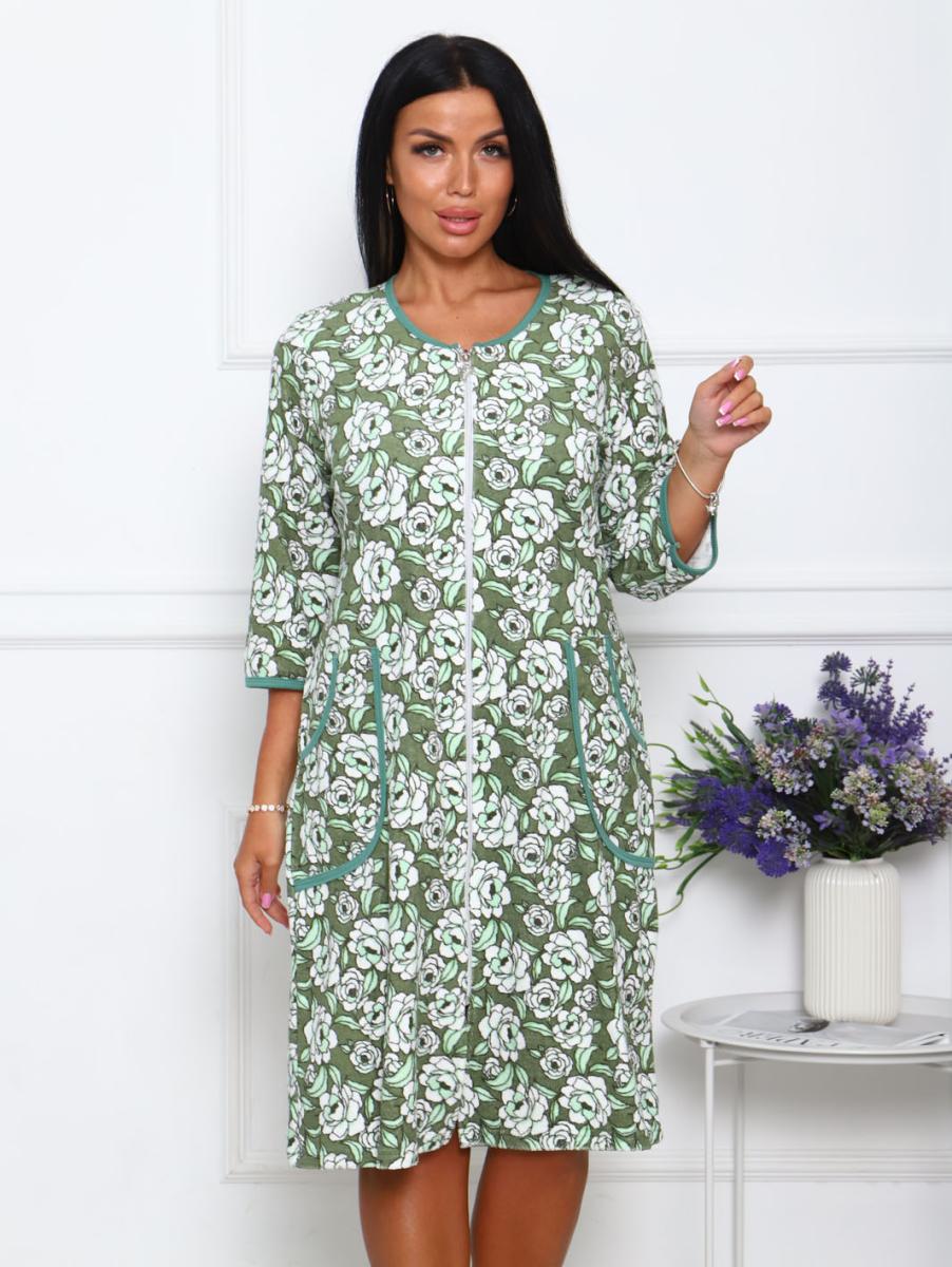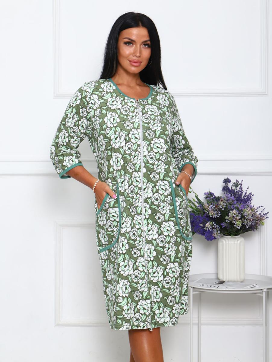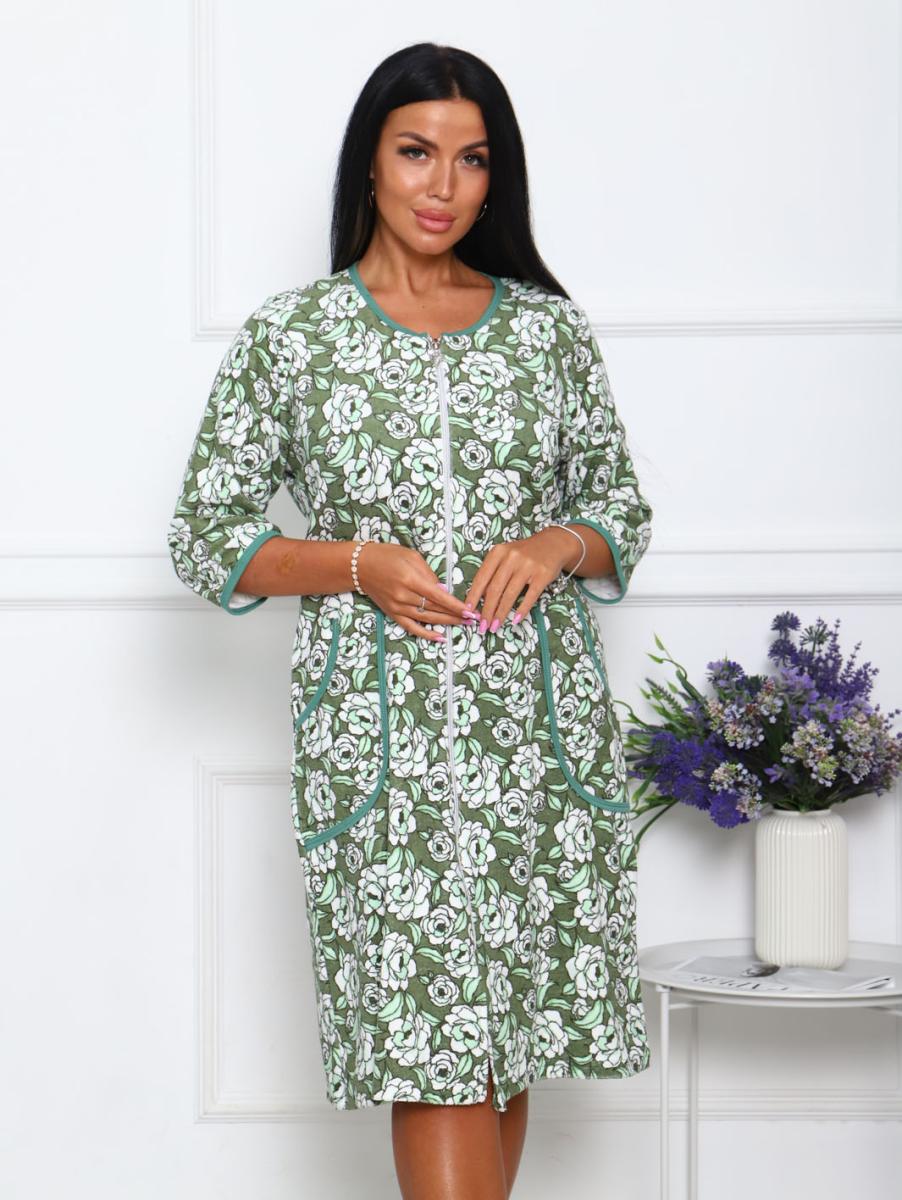 Халат махровый на молнии, зеленый (942-3)