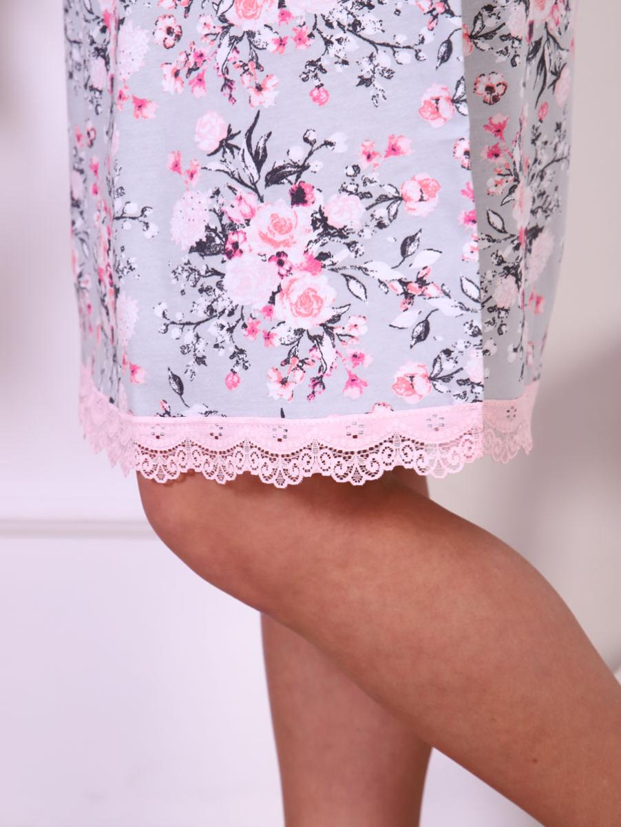 Сорочка на бретелях с кружевом, розовый (847-1)