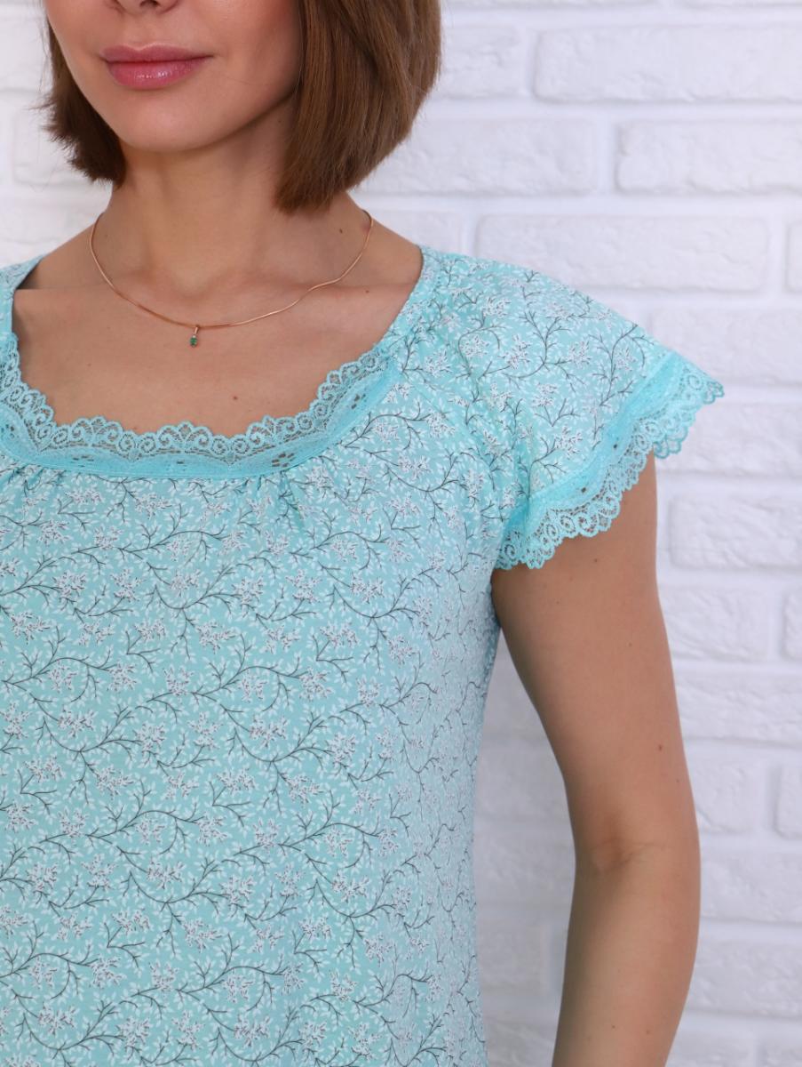 Сорочка с кружевом стрейч, бирюзовый (801-6)