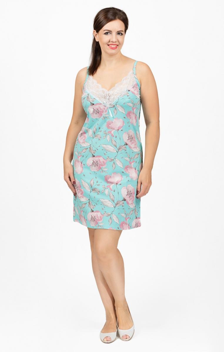 Сорочка вискоза набивка на бретелях, ментол (676-3)