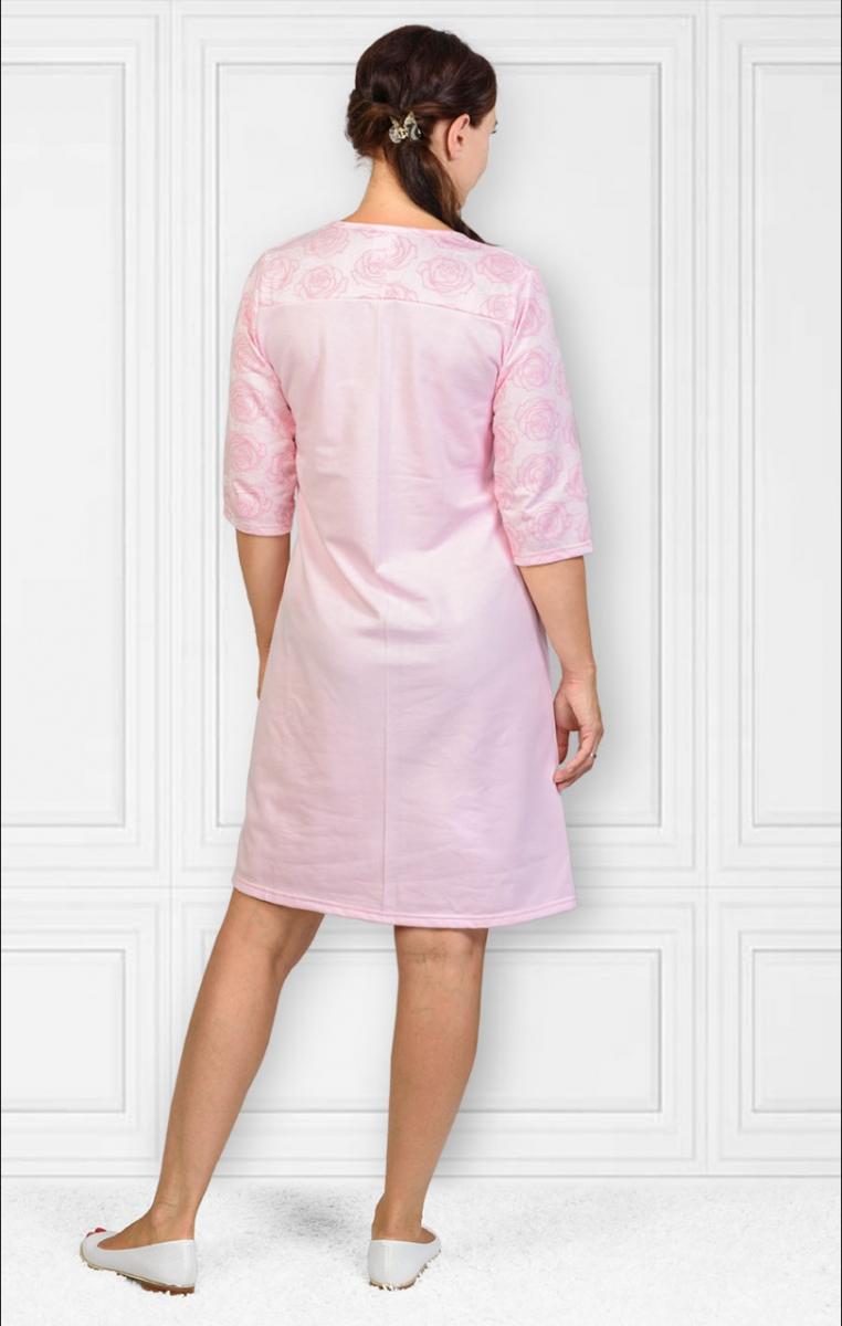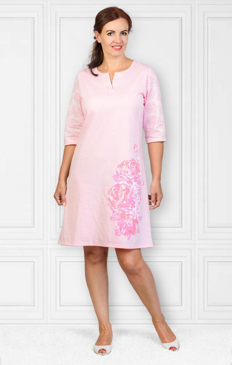 Эта теплая ночная сорочка станет вашим идеальным спутником для уютных вечеров. Изготовленная из мягкого футера с начесом, она обеспечит ощущение комфорта и тепла. Нежный розовый цвет и стильный принт добавляют нотку романтики, а рукав 3/4 придаёт изделию элегантность.