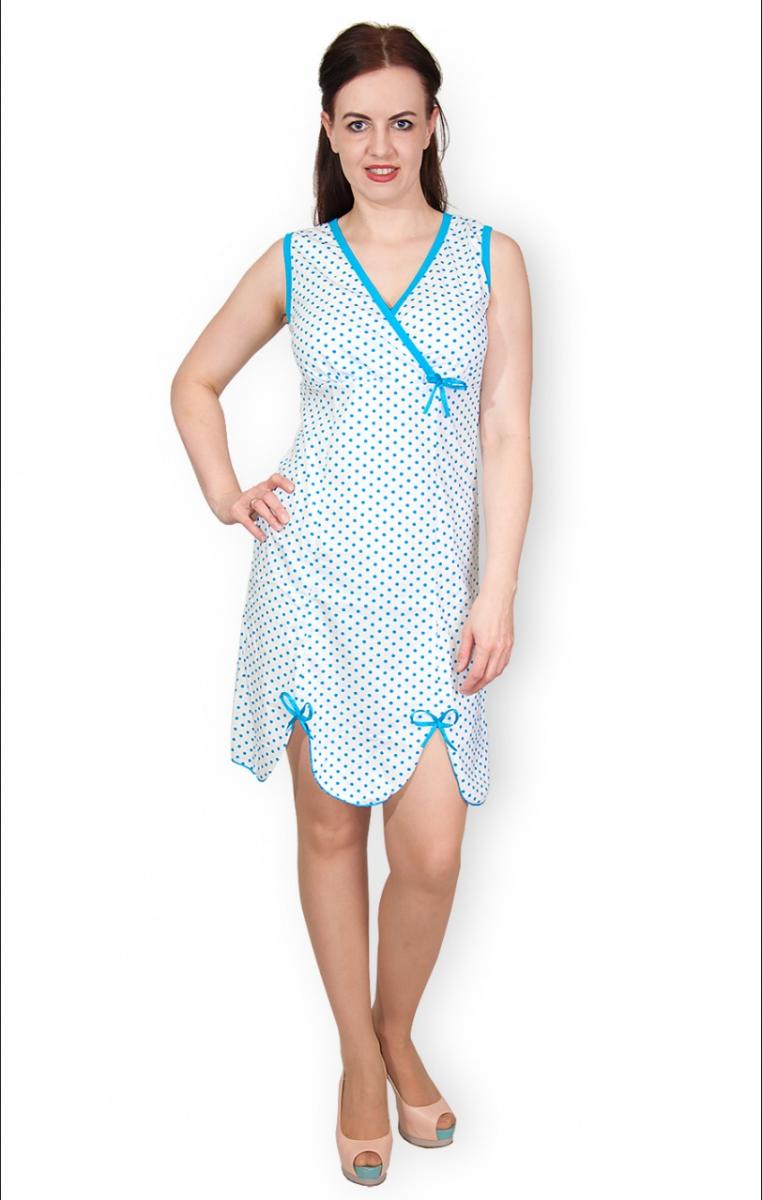 Сорочка имеет изысканный дизайн в нежном бирюзовом оттенке с милыми горошками, что добавляет ей особый шарм. Удобный крой и оригинальные детали, такие как завязки, делают её не только стильной, но и функциональной, что особенно оценят кормящие мамы.