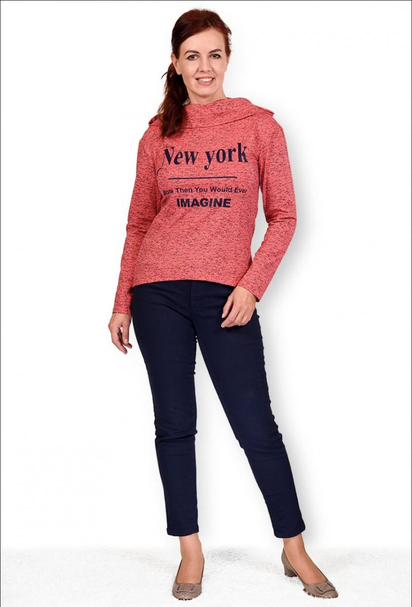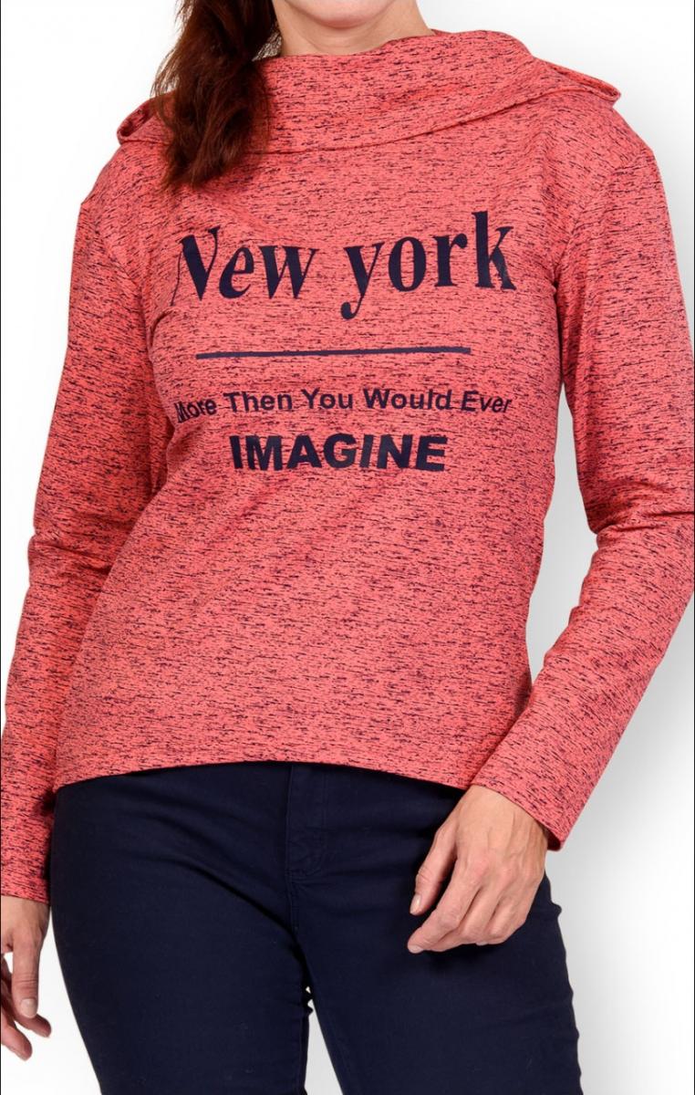 Толстовка с капюшоном, футер с лайкрой, принт "New York", коралл (281-1)