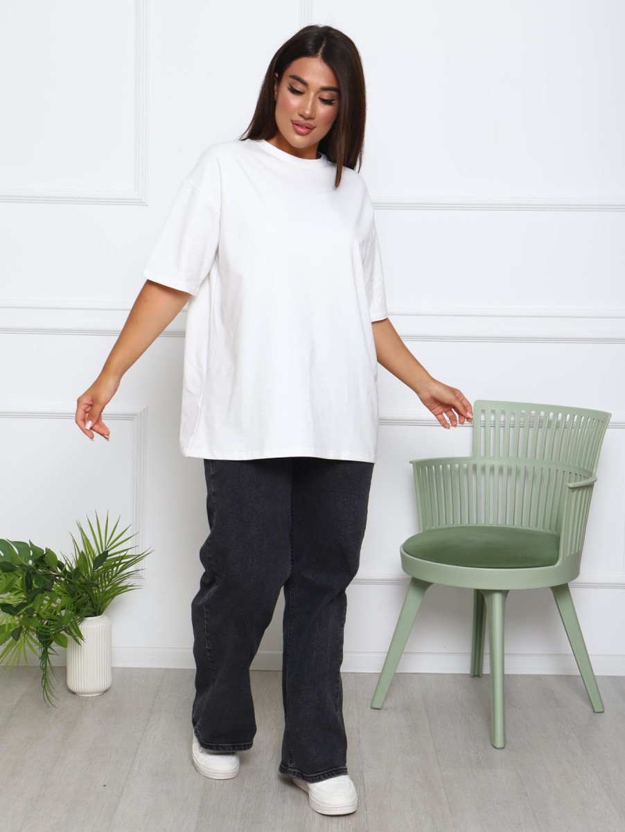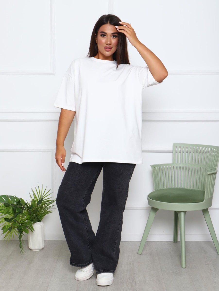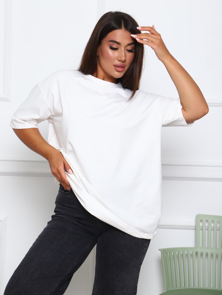 Эта женская футболка оверсайз в белом цвете станет идеальным дополнением вашего гардероба. Изготовленная из кулирки с лайкрой, она обеспечивает максимальный комфорт и свободу движений. Спущенные плечи придают модели расслабленный и стильный вид, что делает ее универсальным выбором для любого случая.