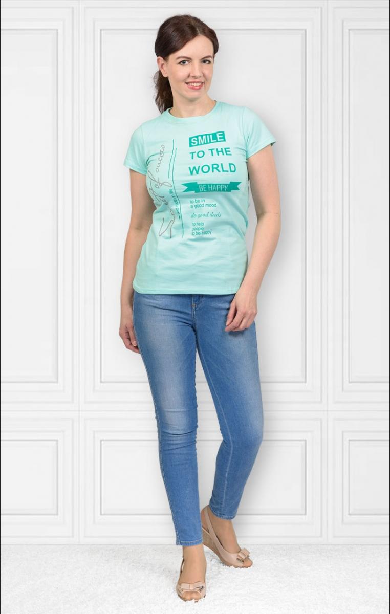 Футболка женская , принт "Smile To The World", ментол (360-1)