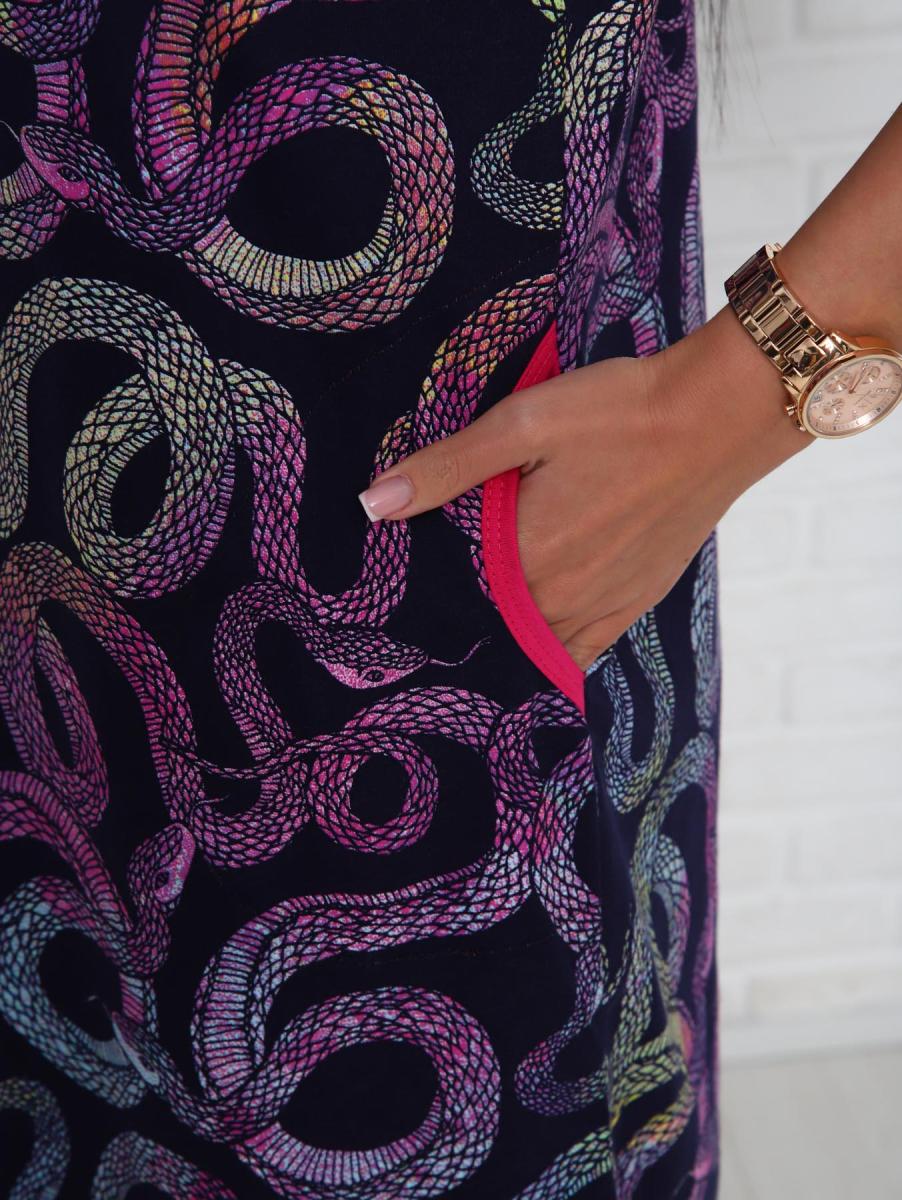 Яркая малиновая расцветка с оригинальным дизайном привнесёт в ваш гардероб нотку свежести и стиля. Трикотажный материал кулирка реактив приятно облегает фигуру и позволяет коже дышать, что делает халат идеальным для любого времени года.