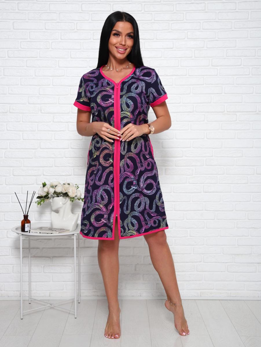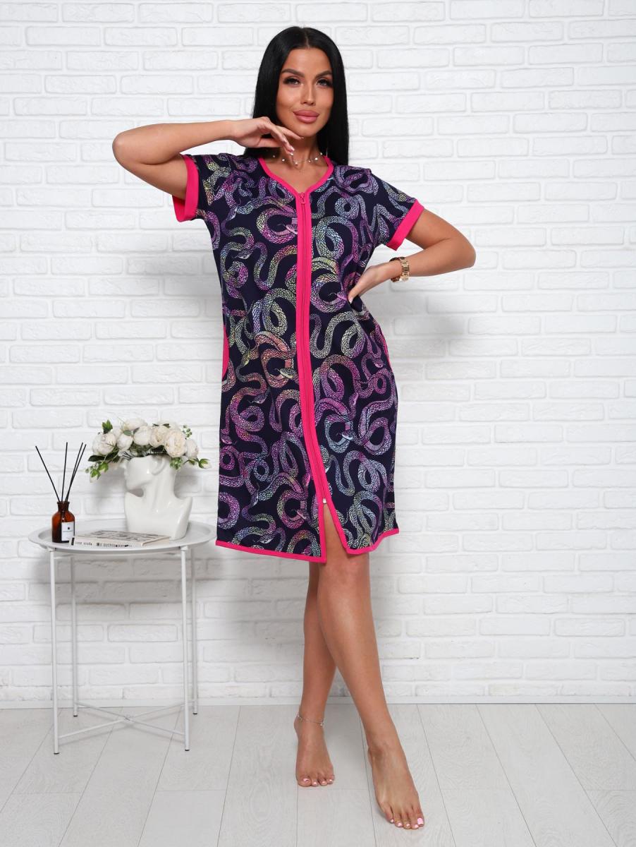 Халат на молнии с карманами (01026, малиновый)