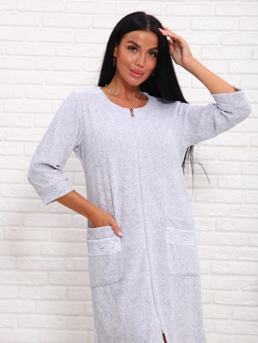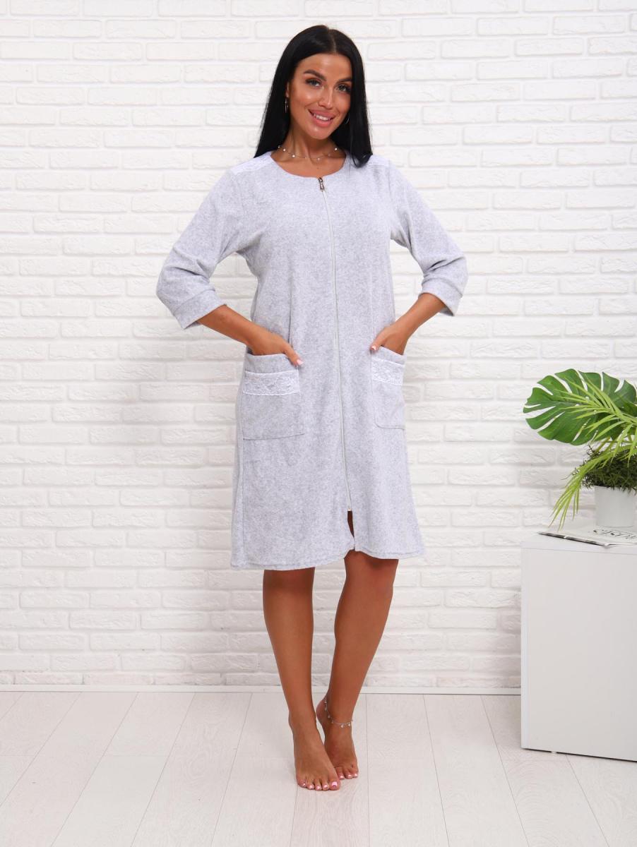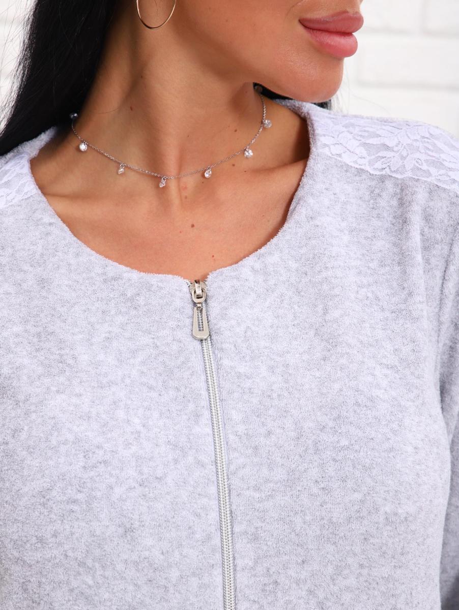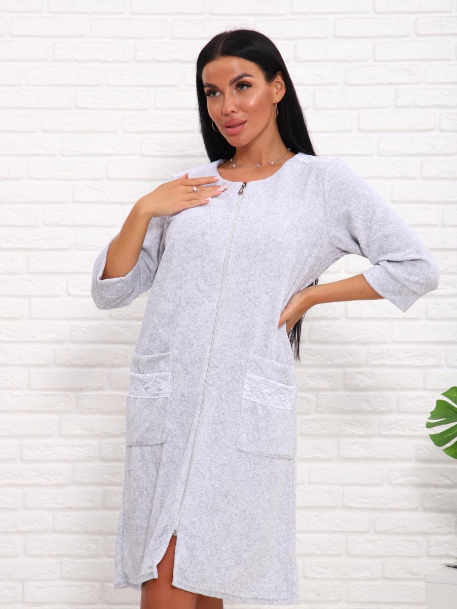 Халат махровый на молнии (01017, серый)