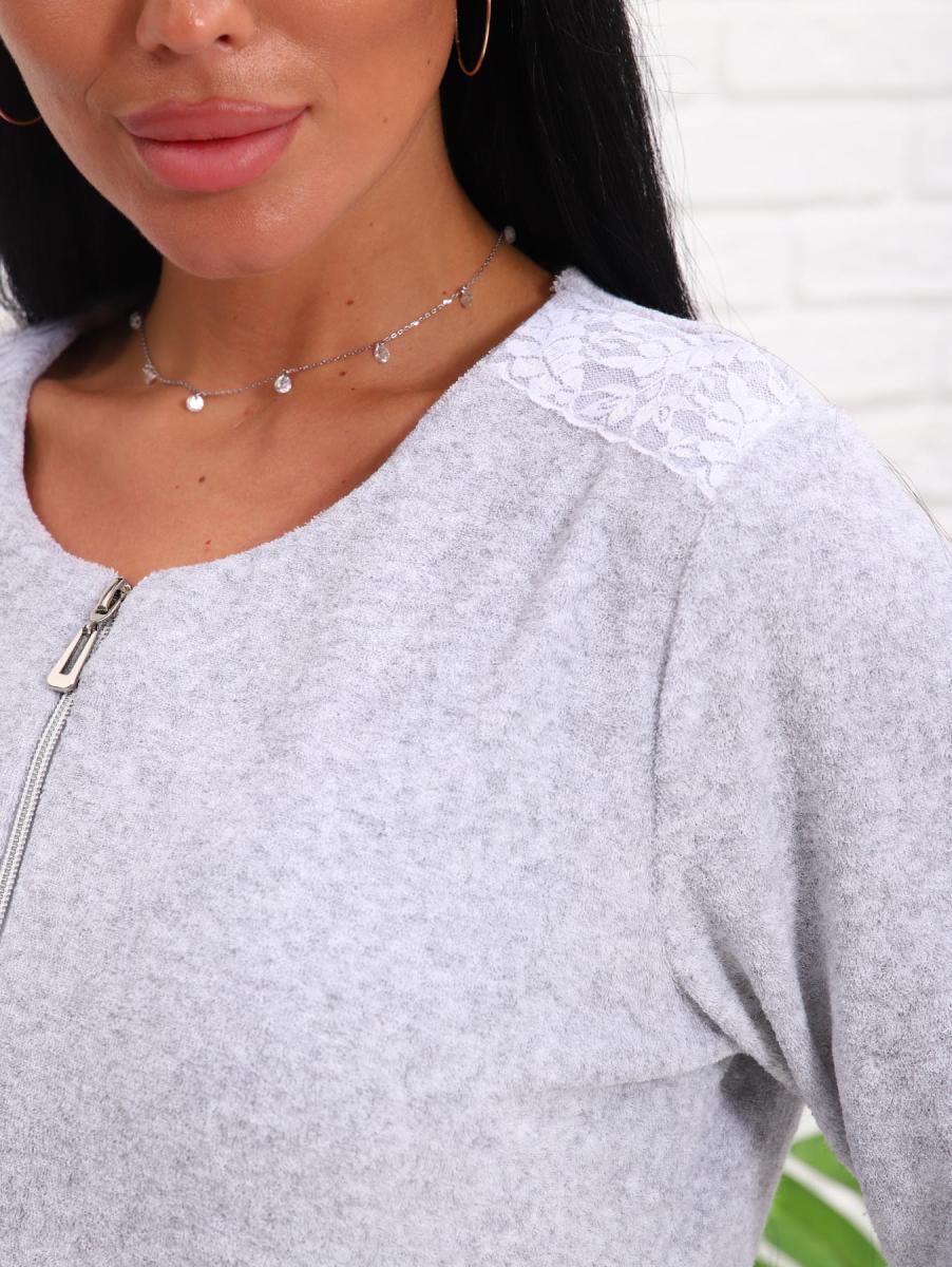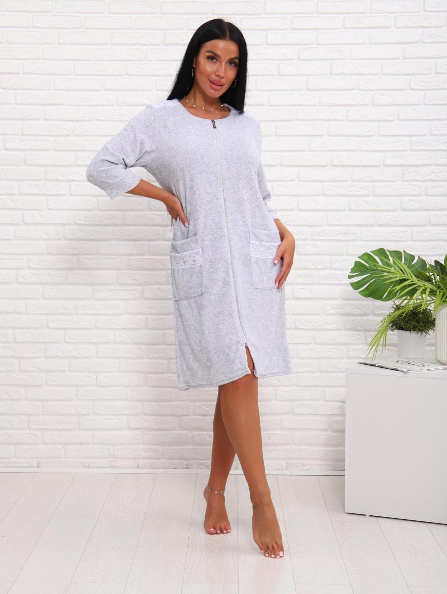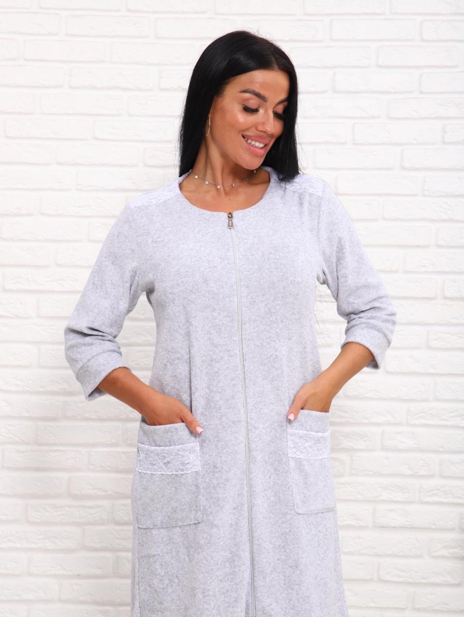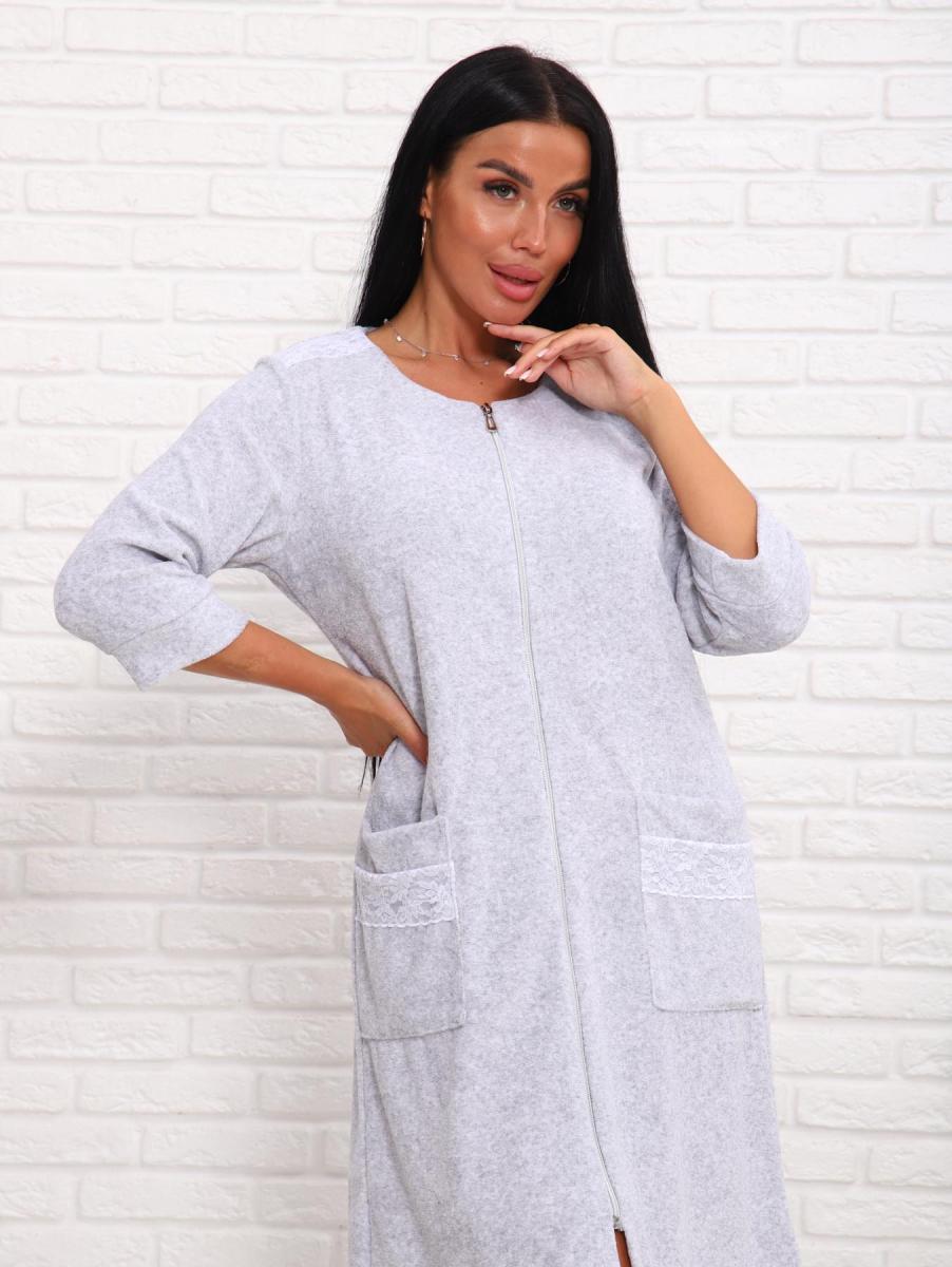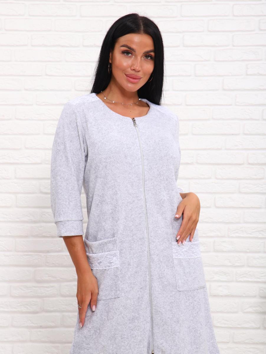 Халат махровый на молнии (01017, серый)
