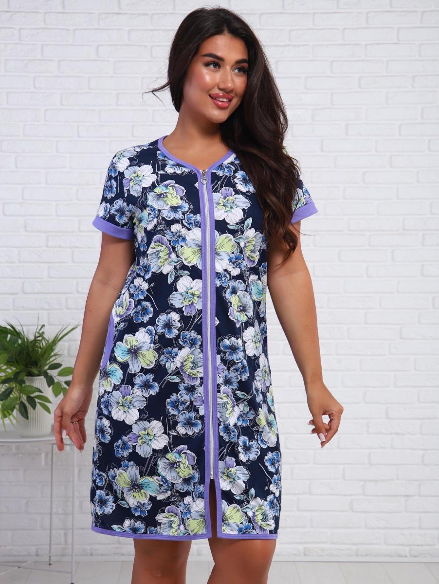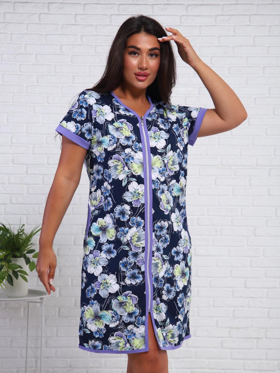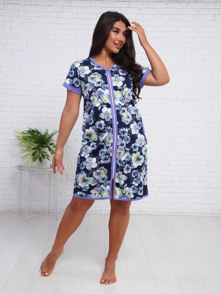 Халат женский с карманами на молнии (01011, синий)