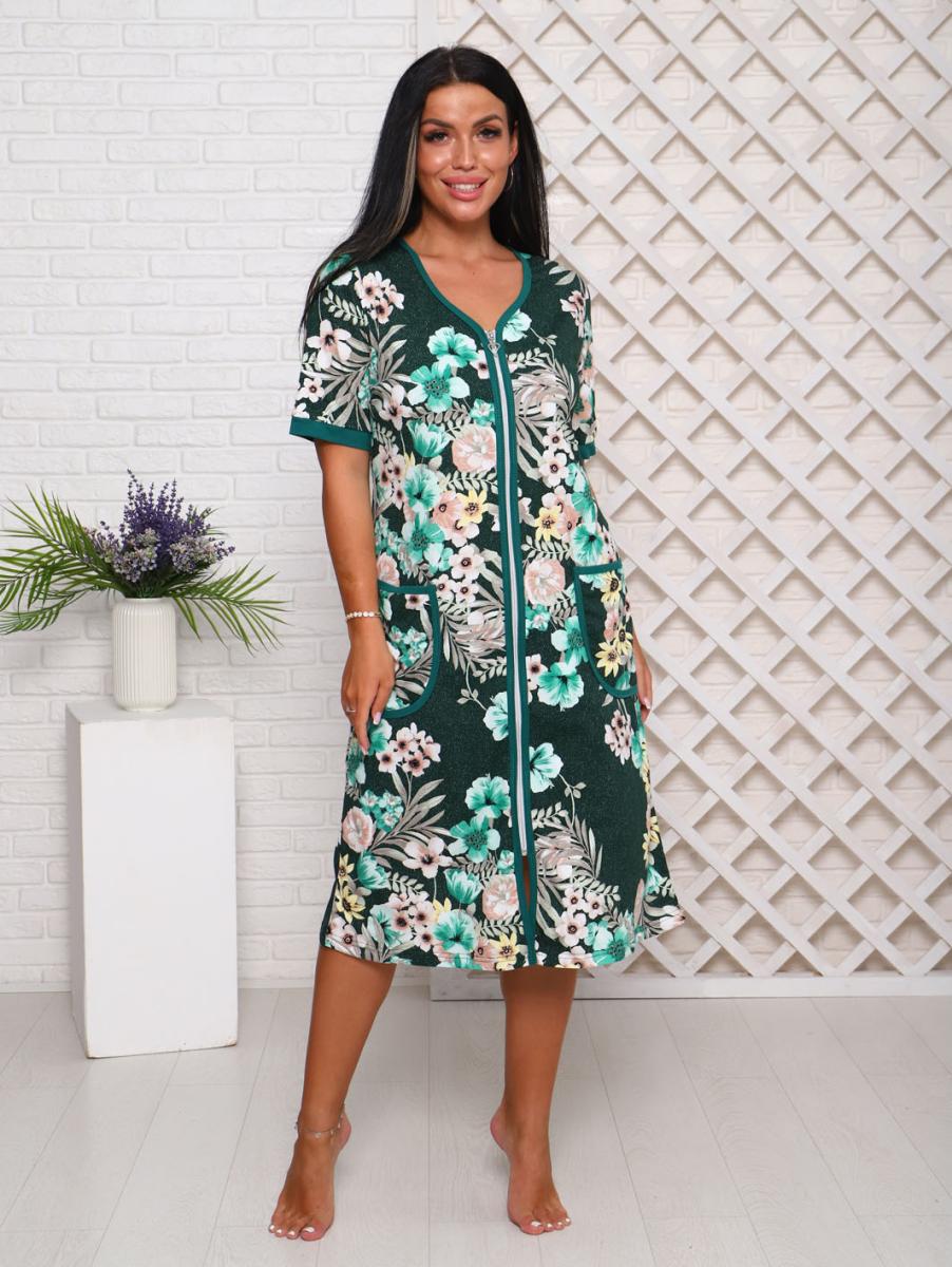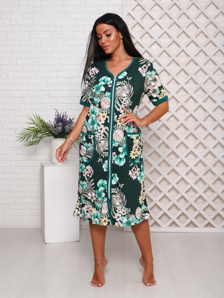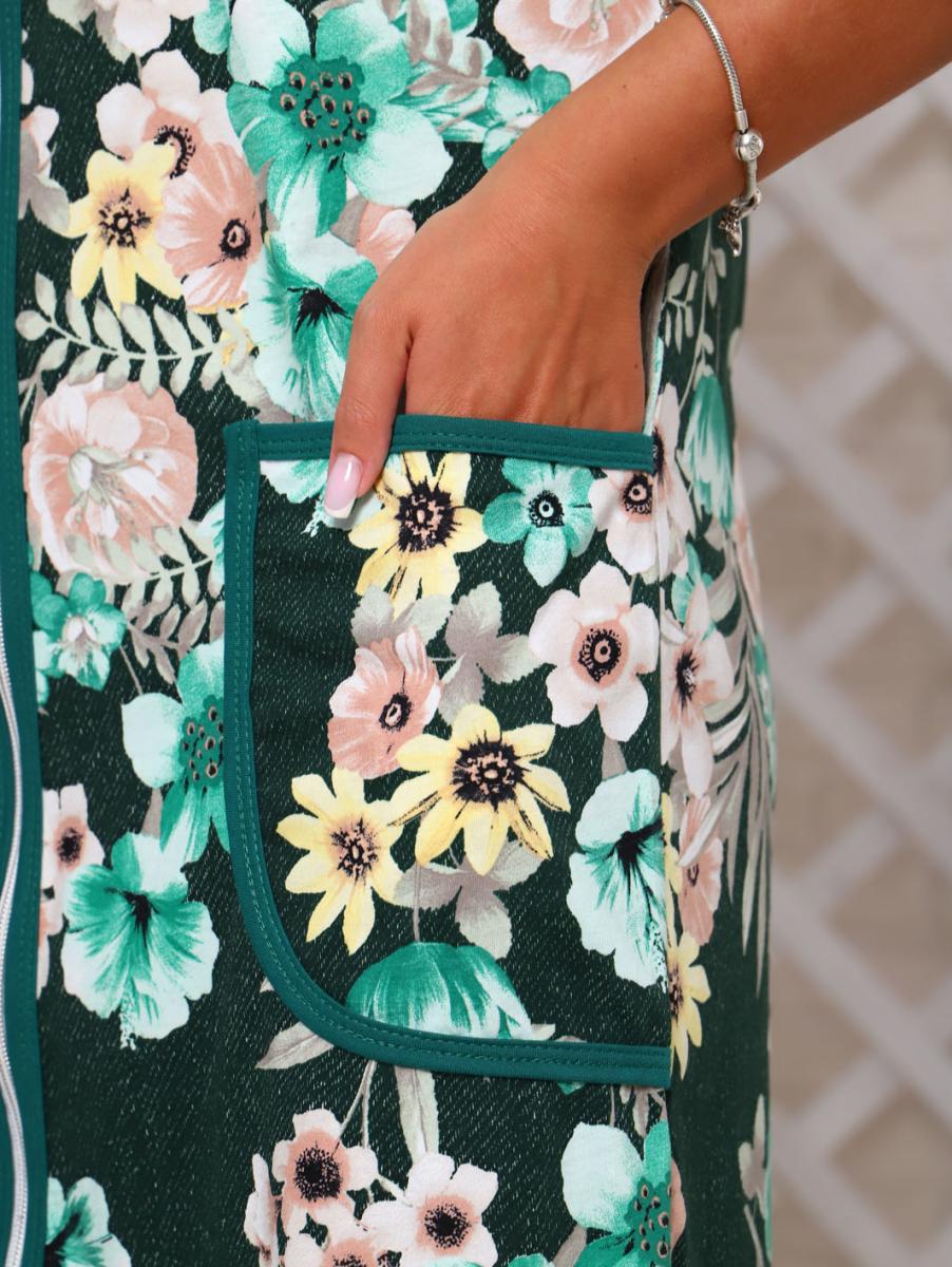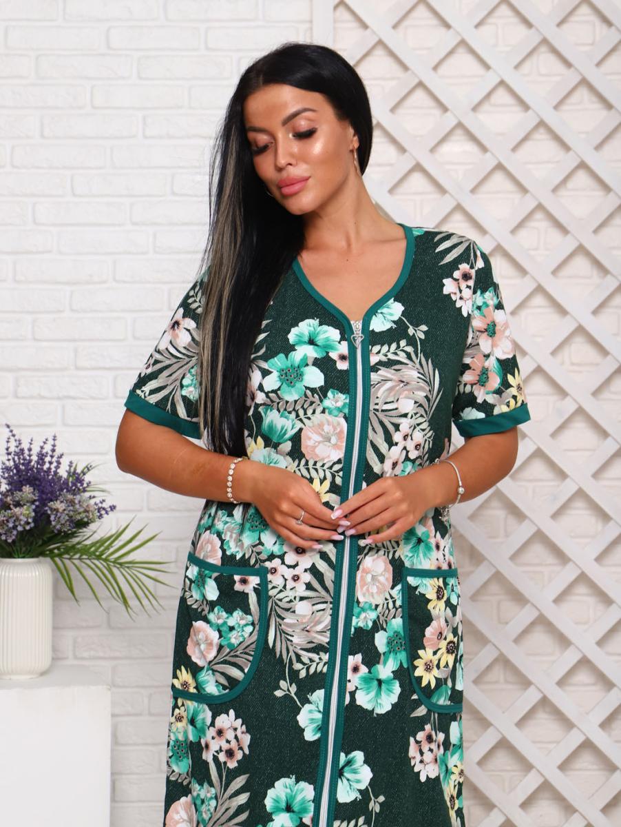 Халат женский с карманами на молнии, зеленый (946-1)