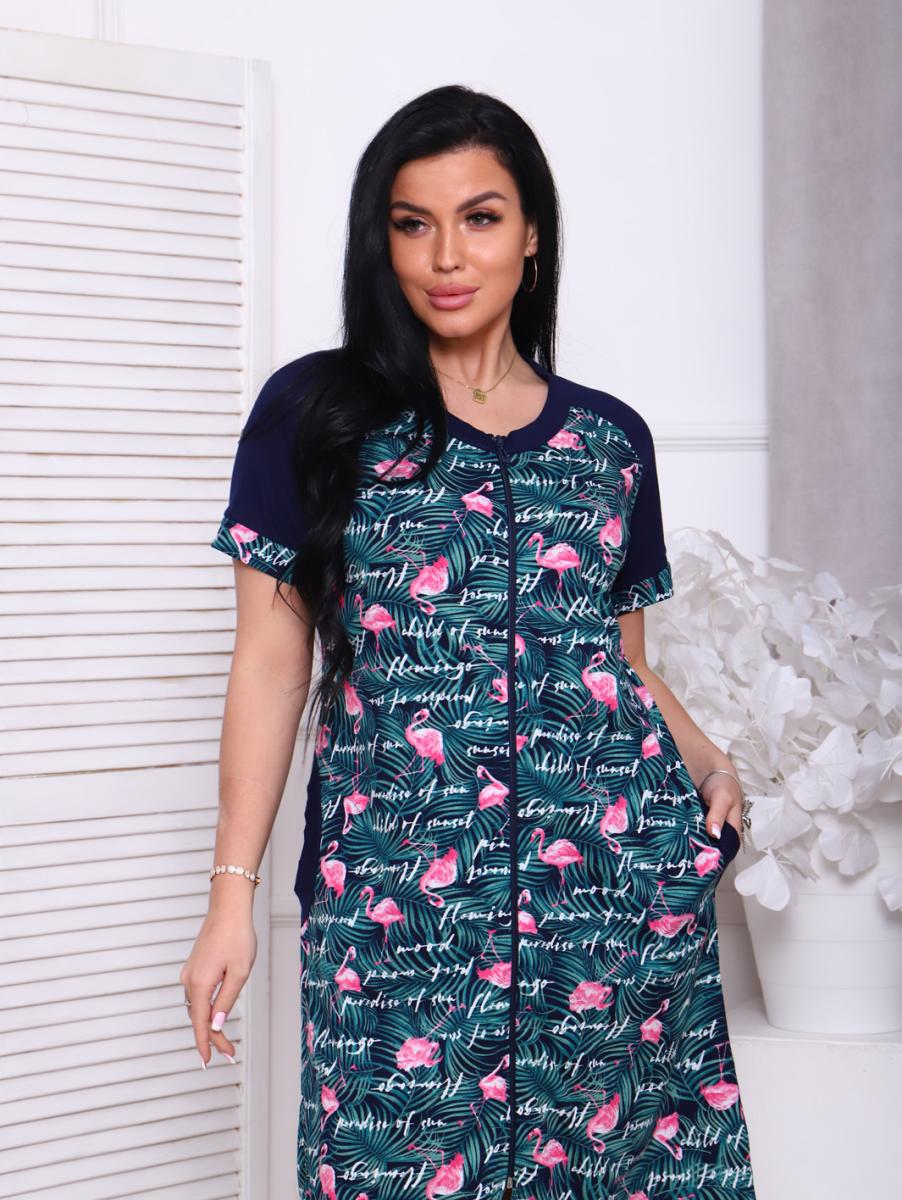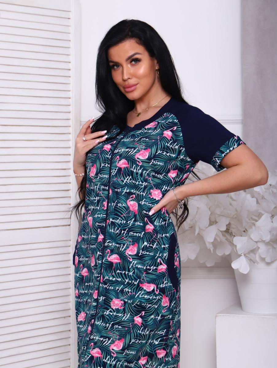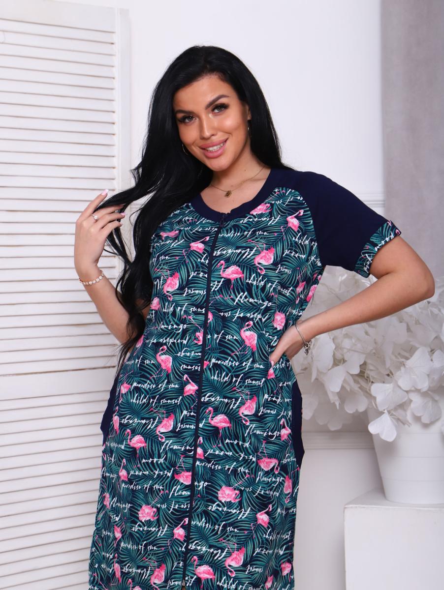 Халат женский на молнии с карманами, зеленый (908-2)