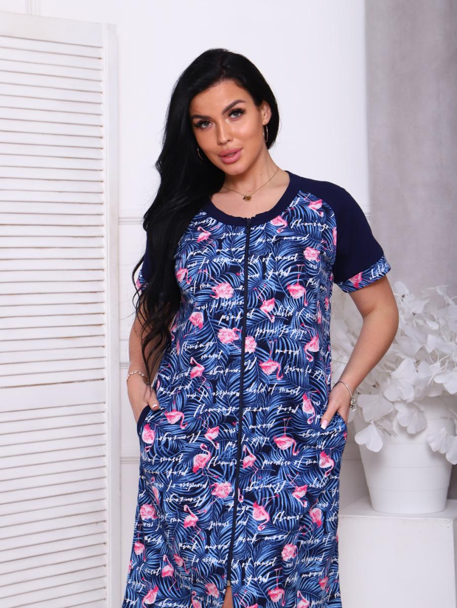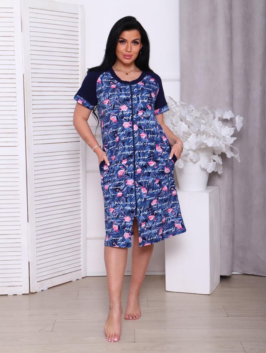 Халат женский на молнии с карманами, синий (908-1)