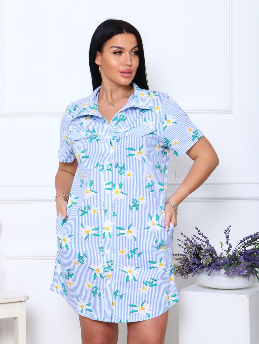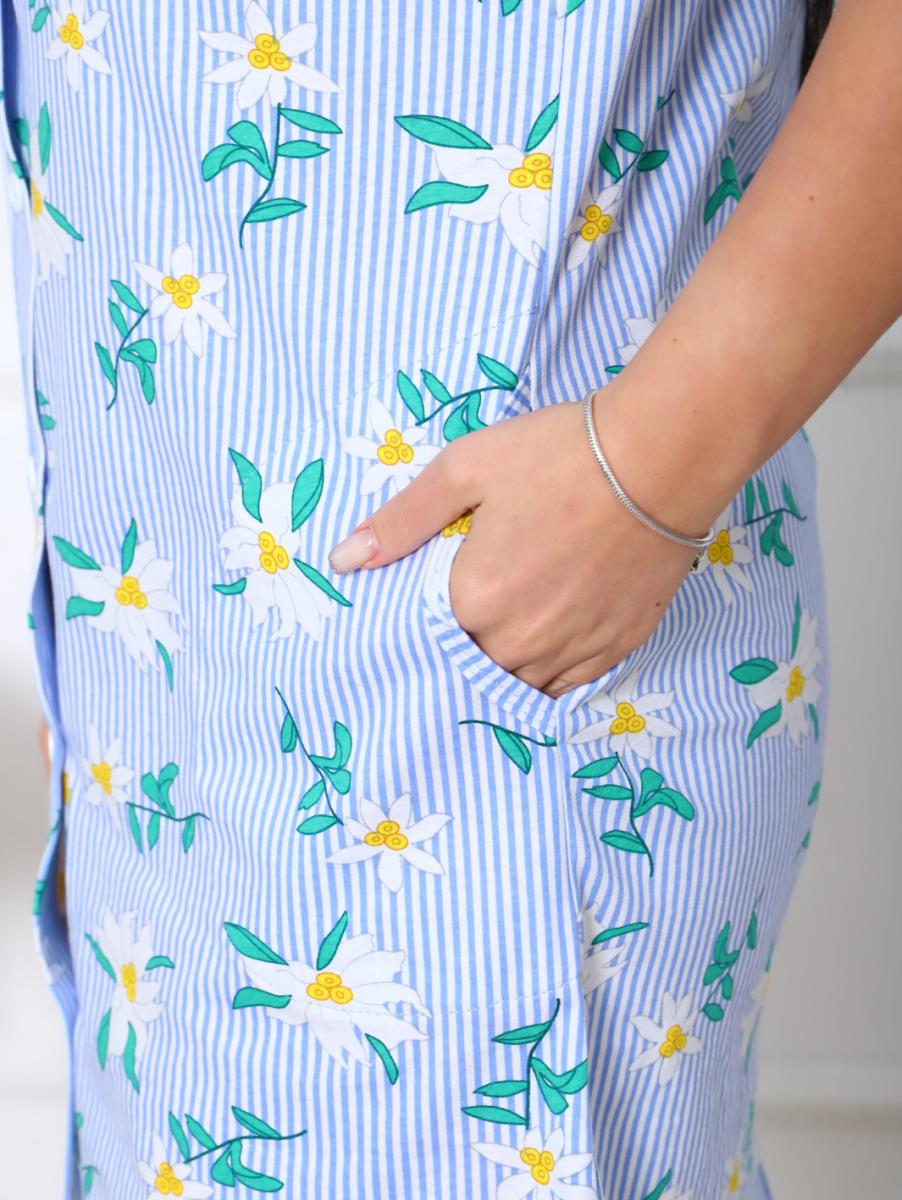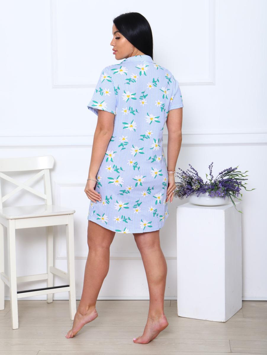 Халат - рубашка на пуговицах с карманами, ромашки (890-1)