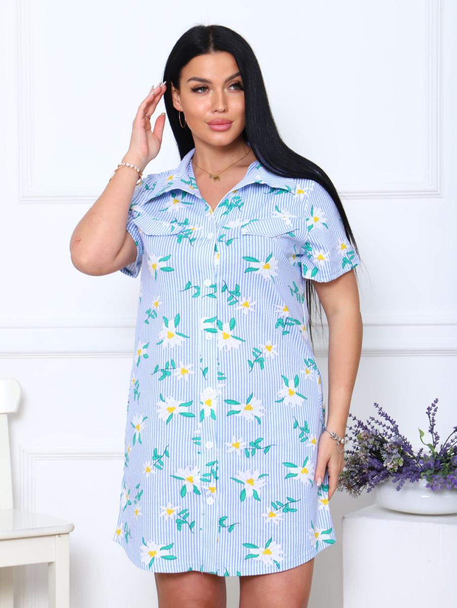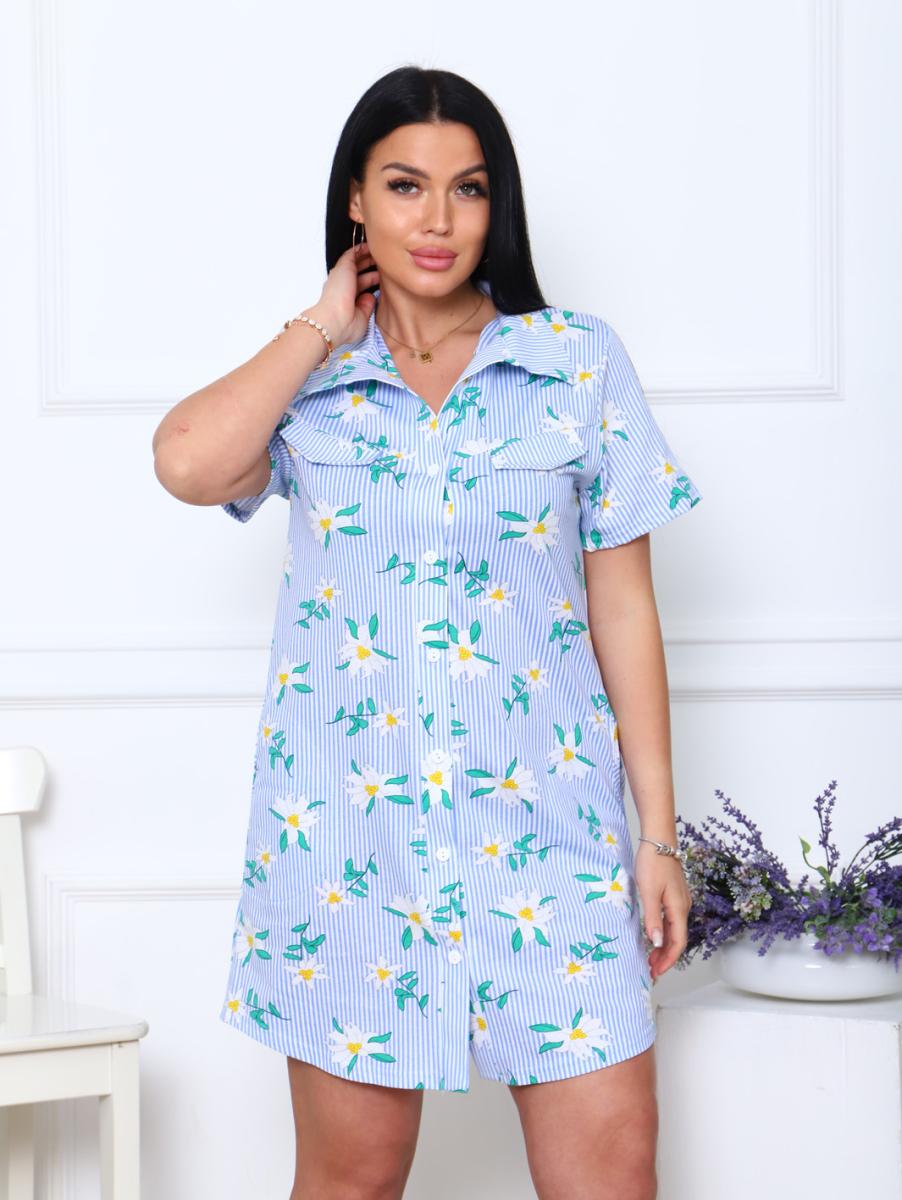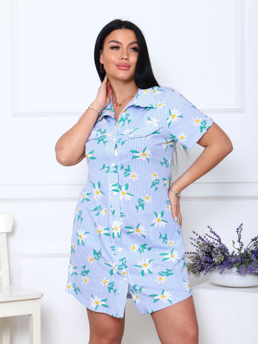 Халат - рубашка на пуговицах с карманами, ромашки (890-1)