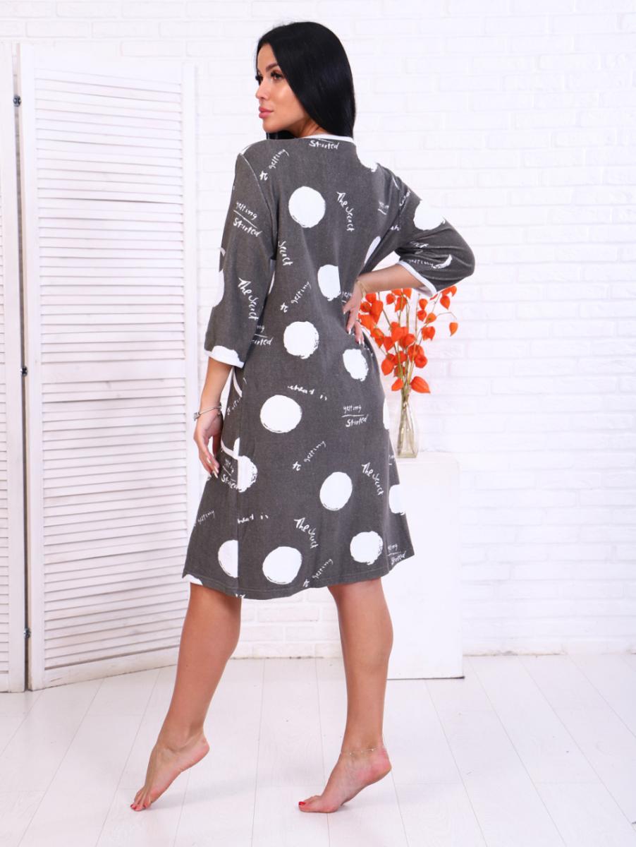 Этот стильный халат из мягкой махры станет вашим незаменимым спутником для уютных вечеров дома. Выполненный из 100% хлопка, он обеспечивает невероятный комфорт и приятные тактильные ощущения. Модель на молнии с накладными карманами не только практична, но и эстетична благодаря оригинальному дизайну с крупными белыми кружками на сером фоне.