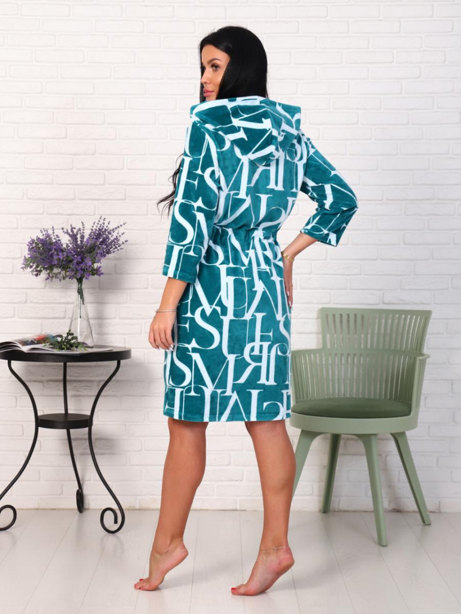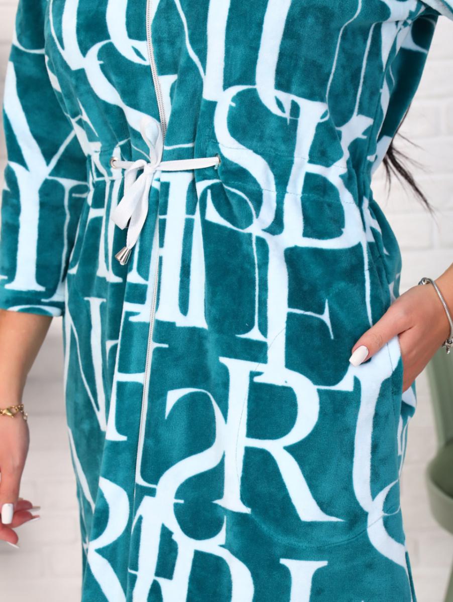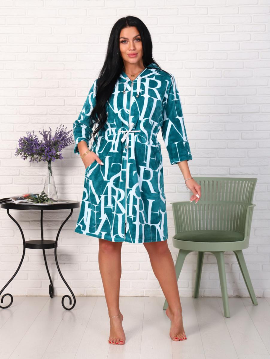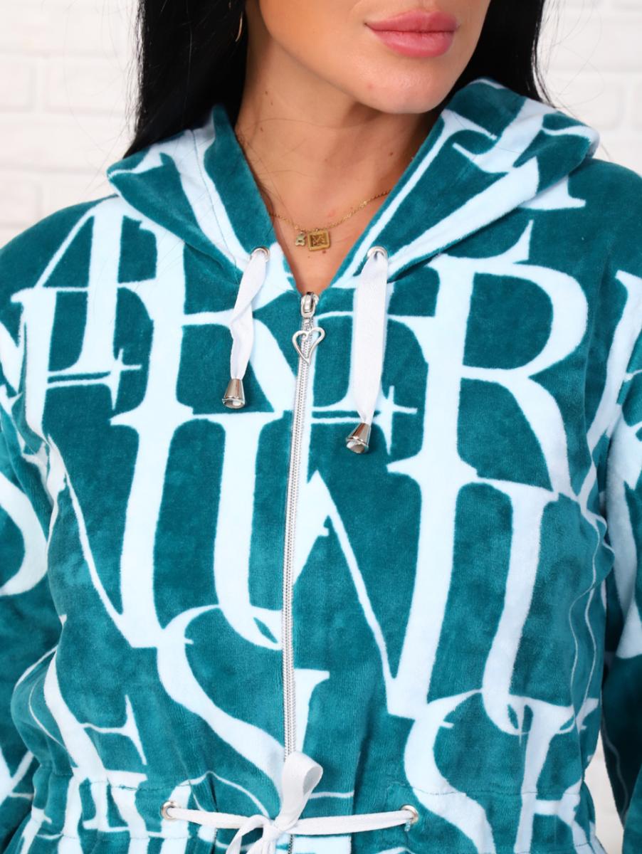 Халат велюровый на молнии с капюшоном, изумруд (868-5)