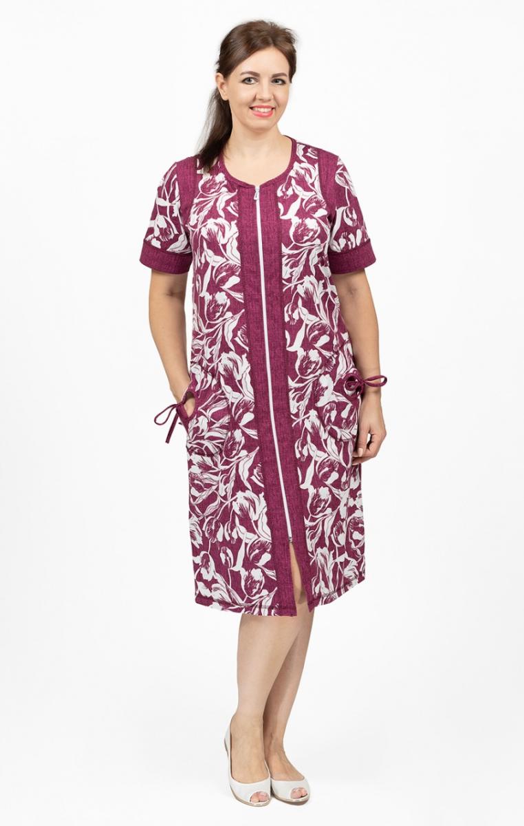 Халат женский на молнии, "Цветы", бордо (654-4)