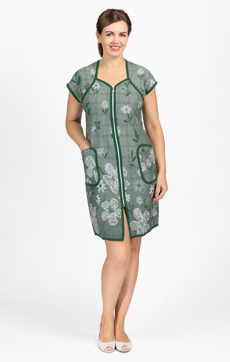Халат женский с карманами на молнии, зеленый (601-1)