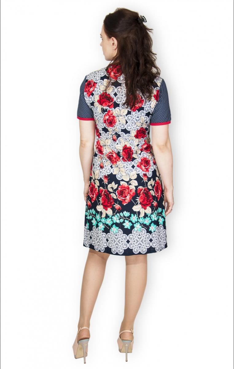 Яркий дизайн с красными цветами и контрастной расцветкой на кокетке и рукавах добавляет изюминку в ваш образ. Удобные карманы позволят вам держать под рукой все необходимое.