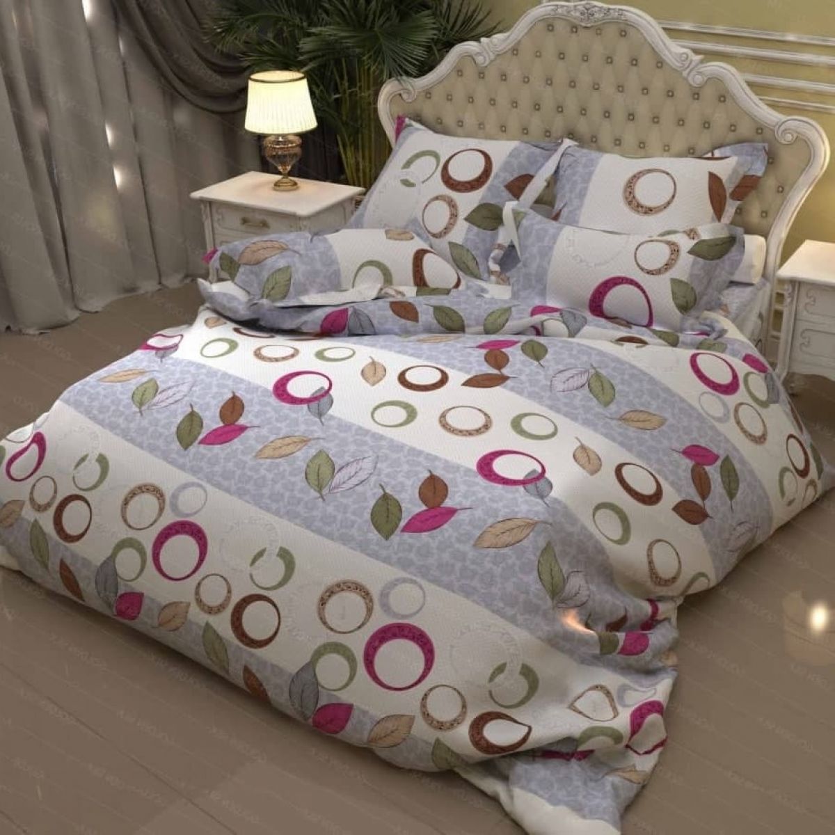 Яркий и жизнерадостный дизайн, украшенный изящными листьями и кругами, привнесет свежесть в вашу спальню. Ткань хорошо пропускает воздух, создавая комфортную атмосферу для сна, а также сохраняет яркость рисунка после множества стирок благодаря экологически чистому материалу.