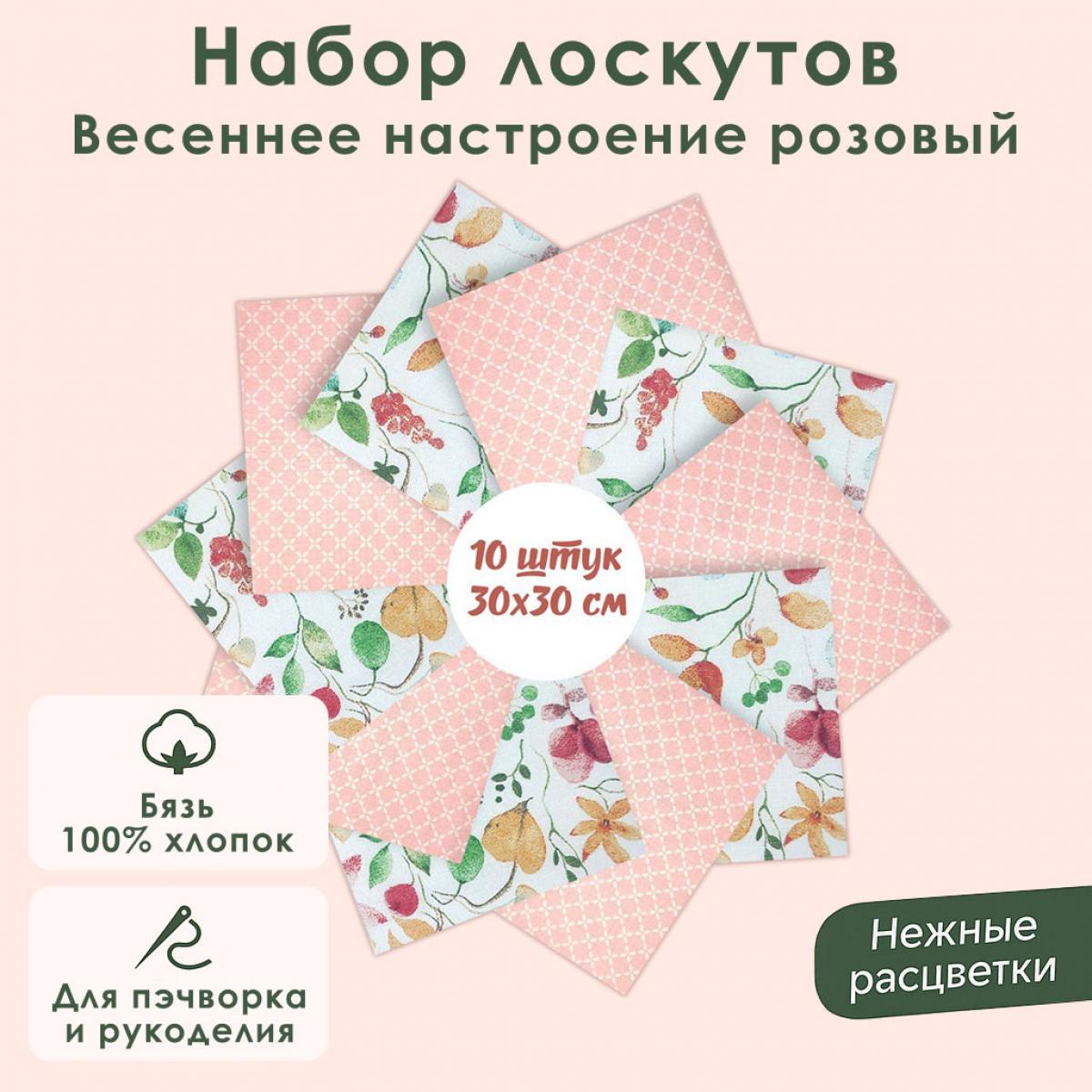 Набор лоскута Весеннее настроение розовый (10 лоскутов 30*30 см)