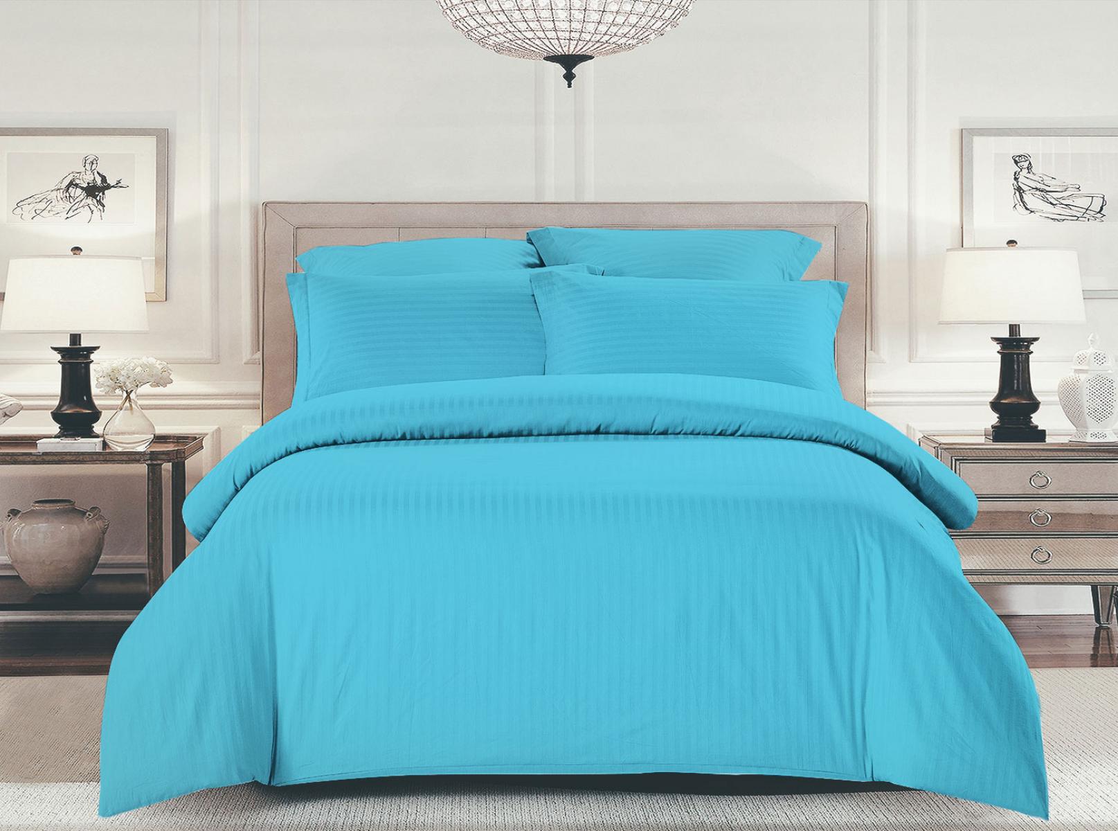 Комплект постельного белья Шпинель лазурный страйп-сатин
