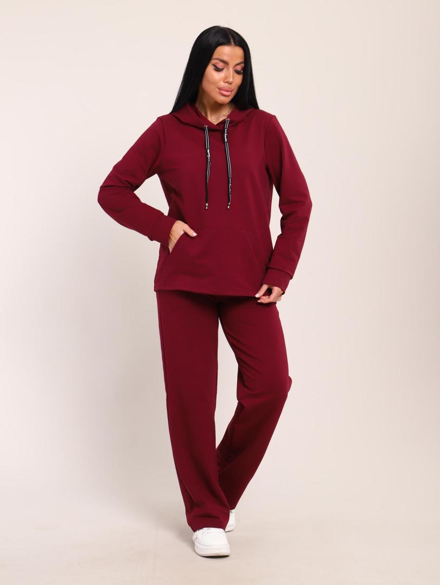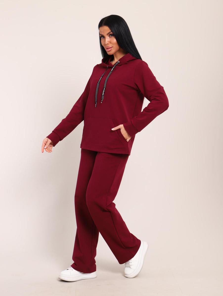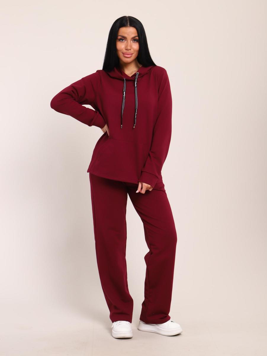 Костюм с капюшоном, футер с лайкрой (01045, бордовый)