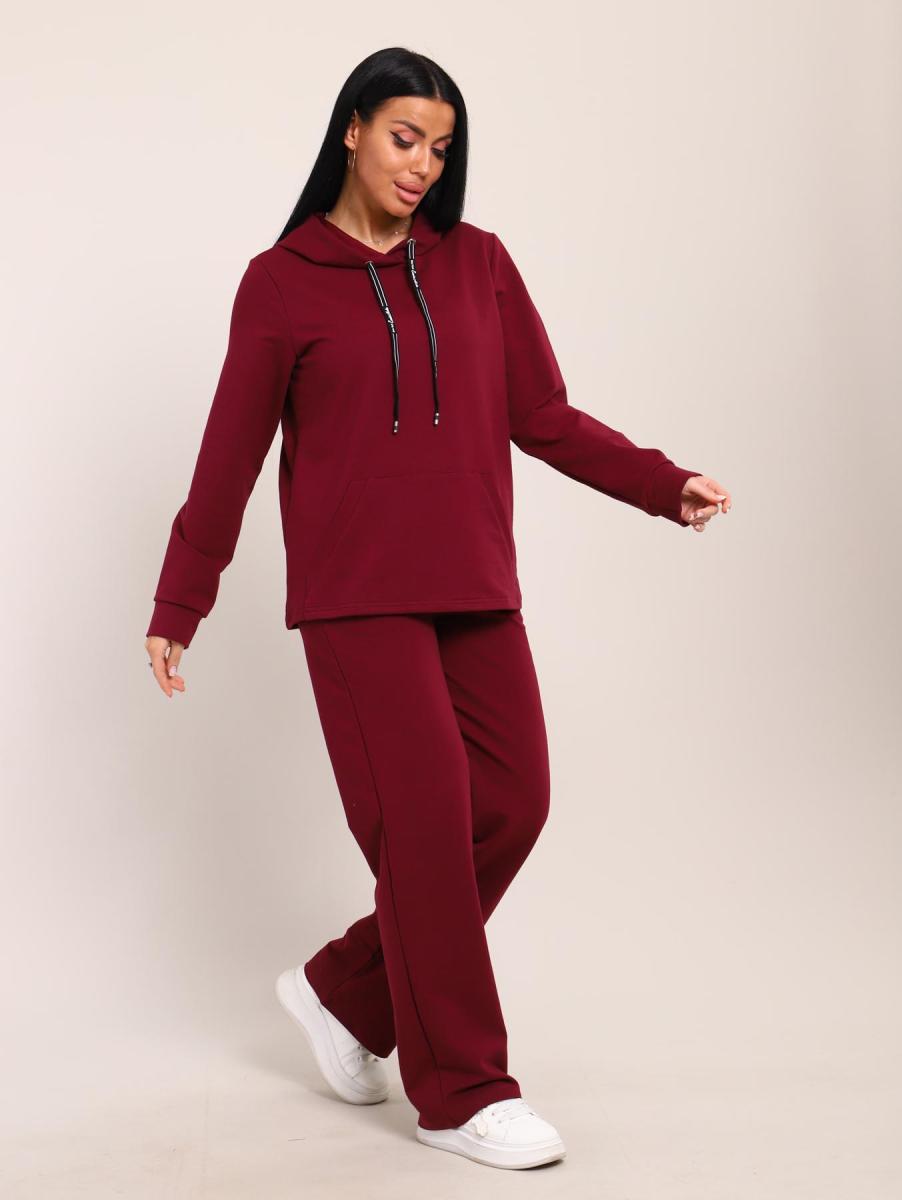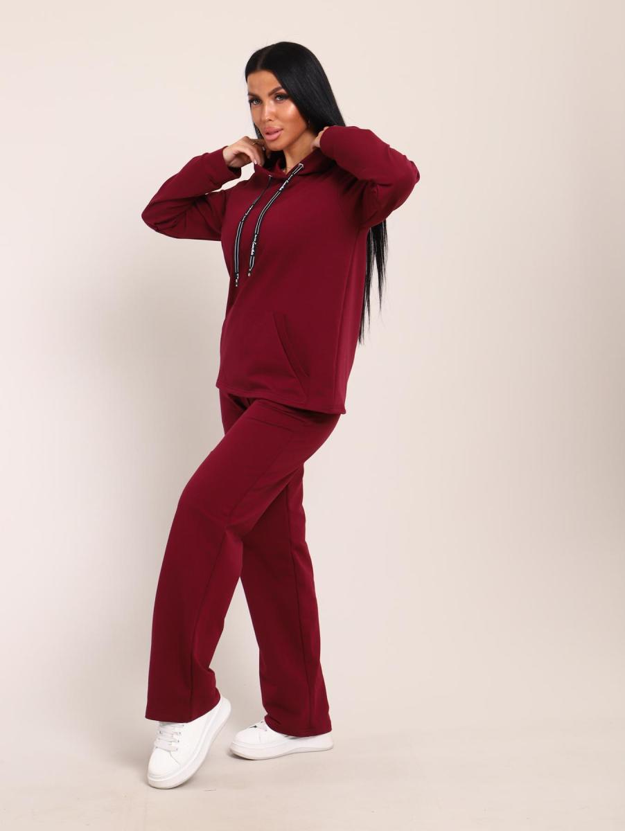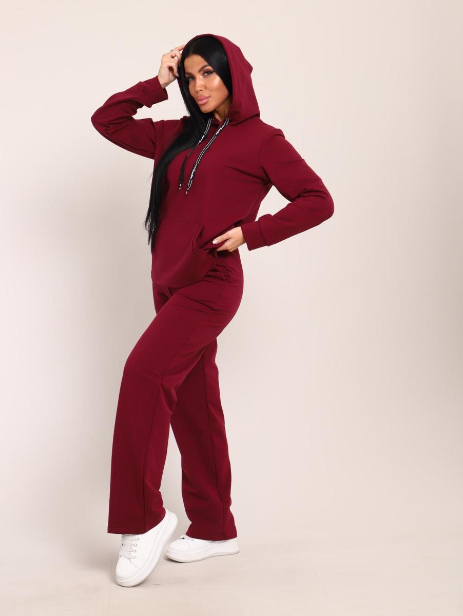 Костюм с капюшоном, футер с лайкрой (01045, бордовый)