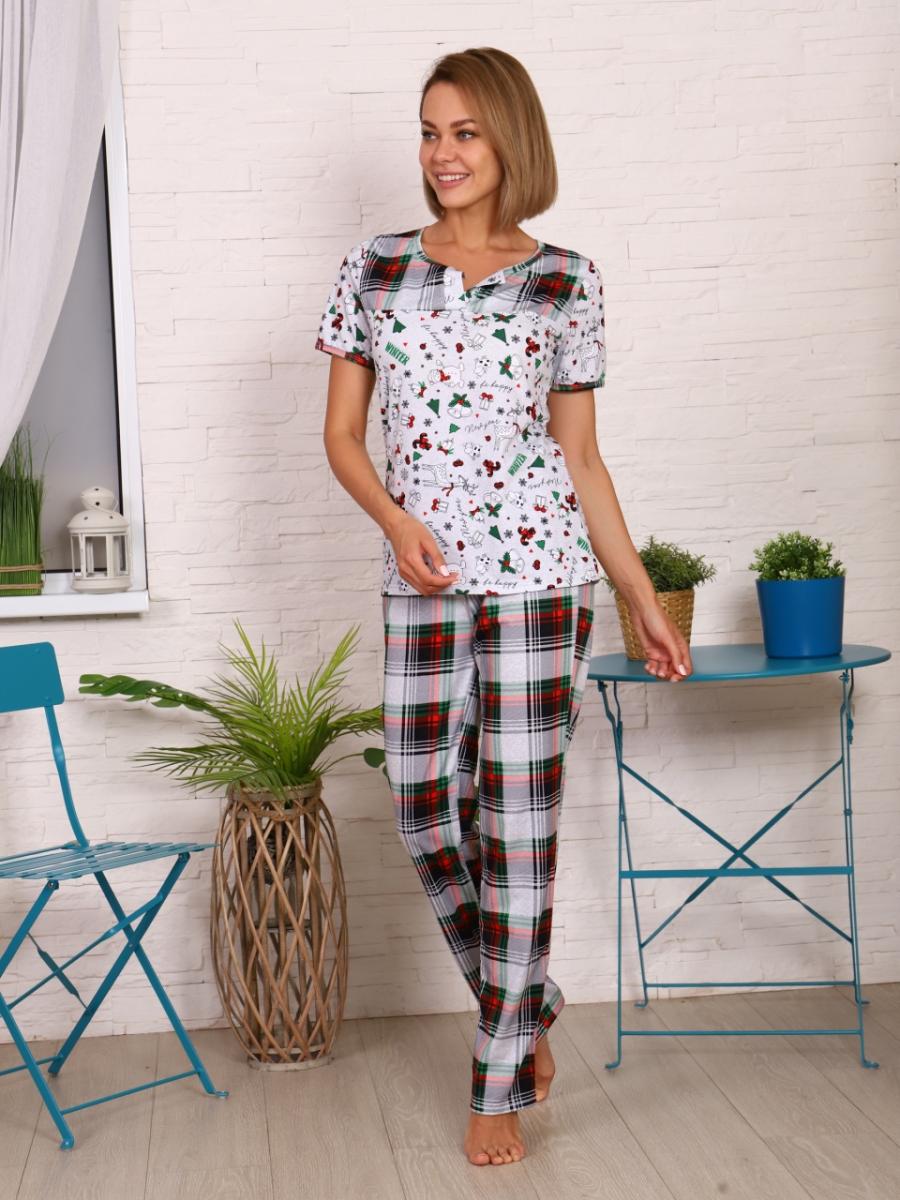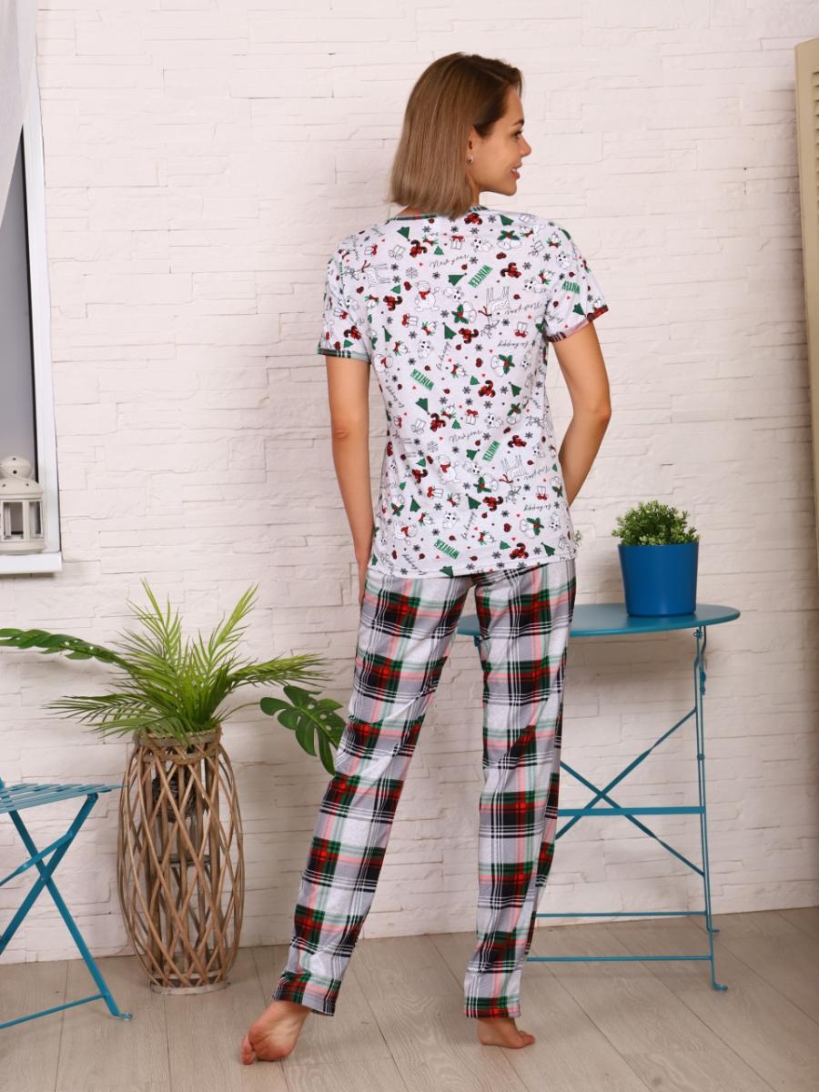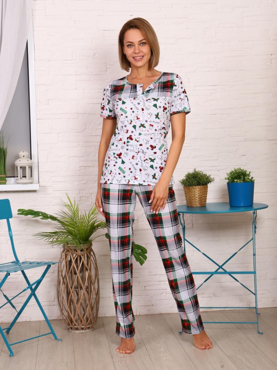 Пижама с длинными брюками, комбинированный красный (687-1)