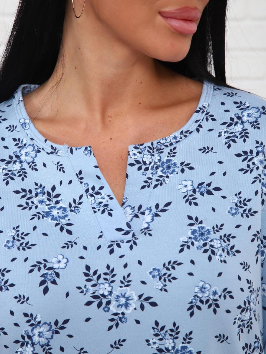 Эта теплая женская ночная сорочка выполнена из мягкого футера с начесом, что делает ее идеальным выбором для комфортного сна и отдыха. Изготовленная на 100% из хлопка, она обеспечивает приятные ощущения на коже и отличную воздухопроницаемость. Сорочка представлена в нежном синем цвете с изящным рисунком, который добавляет нотку элегантности в ваш домашний стиль. Дизайн с короткими рукавами и удобным вырезом позволяет свободно двигаться, создавая ощущение легкости и уюта. Преимущества данной сорочки: