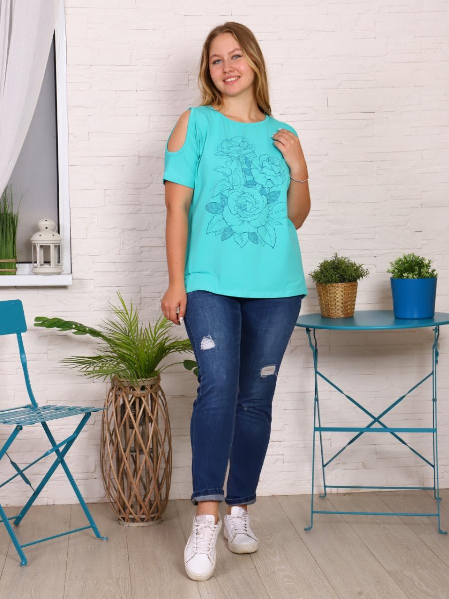 Футболка, принт, изумруд (722-5 кулирка с лайкрой)