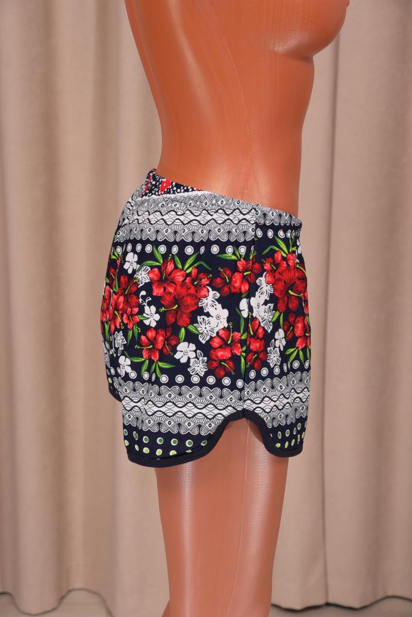Эти трикотажные шорты — идеальный выбор для теплого сезона! Они выполнены из высококачественной ткани кулирка двойного крашения, что обеспечивает мягкость и комфорт при носке. Благодаря 100% хлопковому составу, ваши ноги будут дышать, а вы сможете наслаждаться активным отдыхом. Яркий цветочный принт с красными цветами на темном фоне добавляет шортикам стильный и свежий вид, идеально подходящий для летних прогулок или поездок на пляж. Эластичный пояс обеспечивает отличную посадку, а свободный крой не сковывает движений. Преимущества шорт: