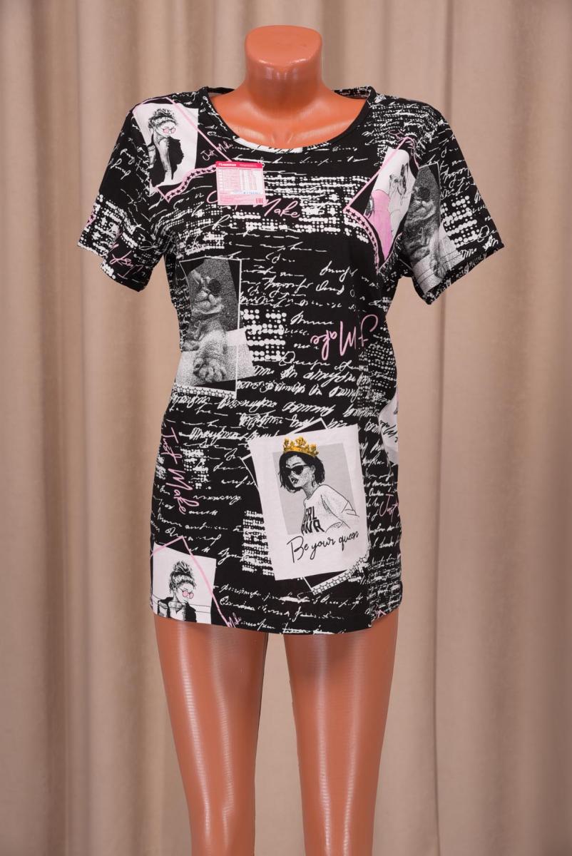 Эта стильная женская футболка выполнена из легкой и приятной на ощупь кулирки, которая состоит на 100% из хлопка. Модель украшена оригинальным принтом с яркими изображениями, что придаёт ей уникальность и выразительность. Отличный выбор для создания как повседневного, так и более нарядного образа.