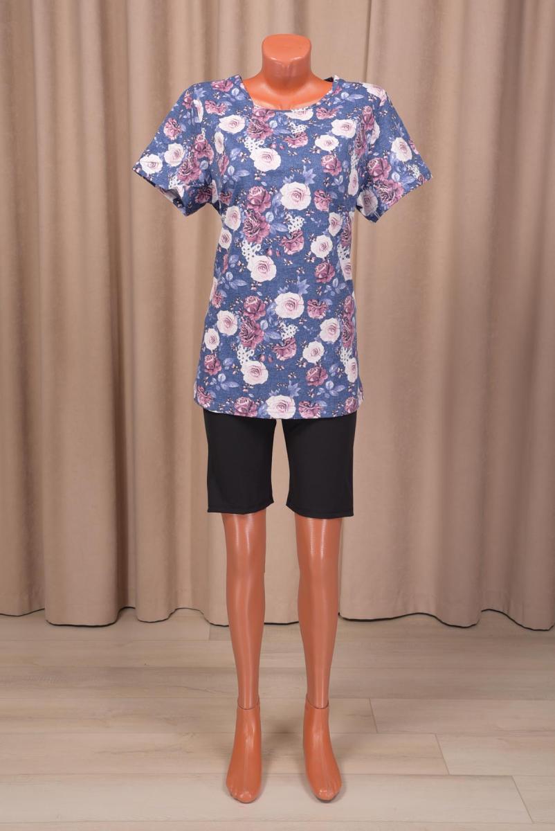 Яркий дизайн с цветочным принтом на синем фоне добавляет свежести и легкости вашему образу. Ненавязчивый крой и удобная форма позволят вам чувствовать себя свободно в любой ситуации — будь то прогулка по городу или встреча с друзьями.