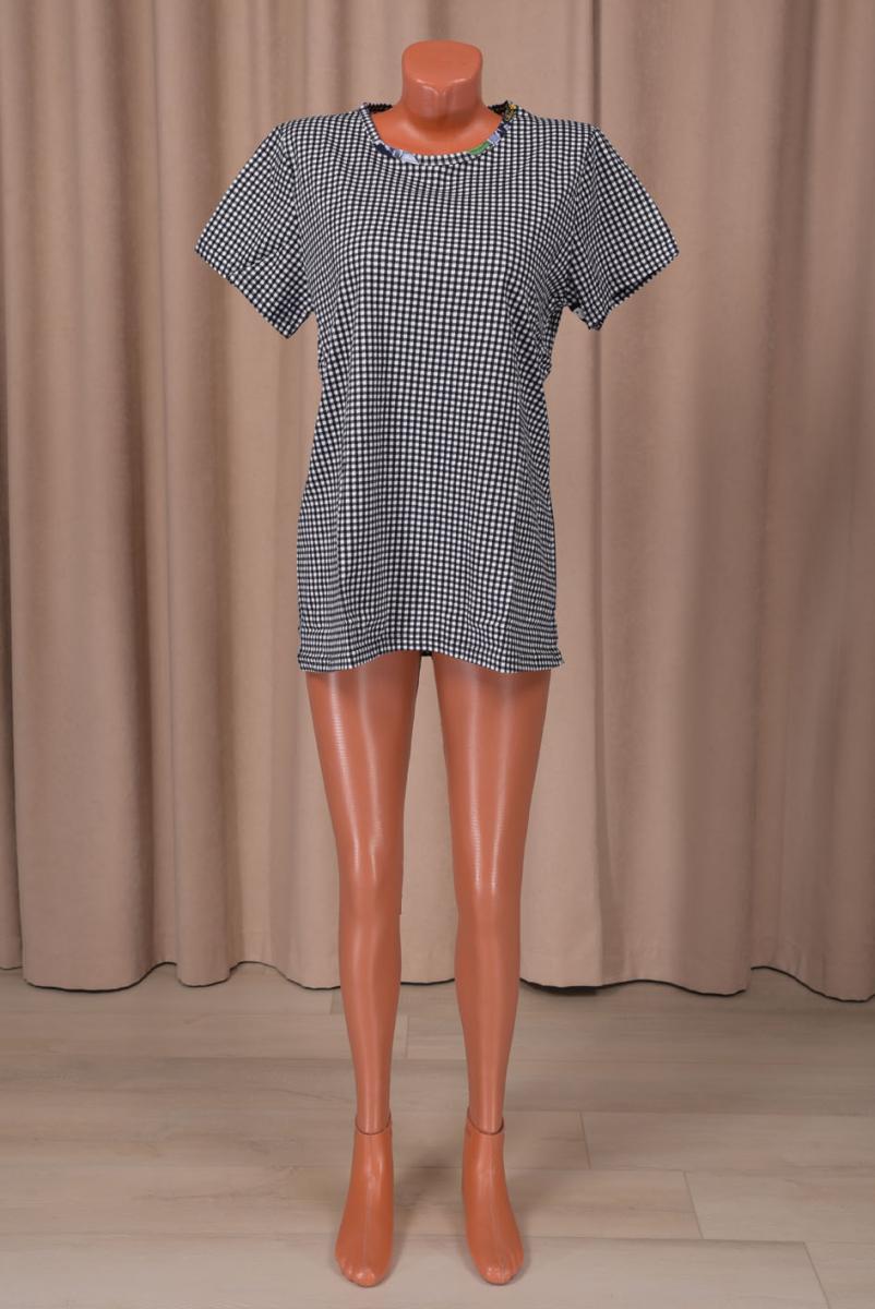 Футболка выполнена в современном дизайне с оригинальным клетчатым принтом, который добавляет нотку игривости и свежести вашему образу. Удобный крой с короткими рукавами позволяет сочетать её с различными стилями — от casual до более нарядных.
