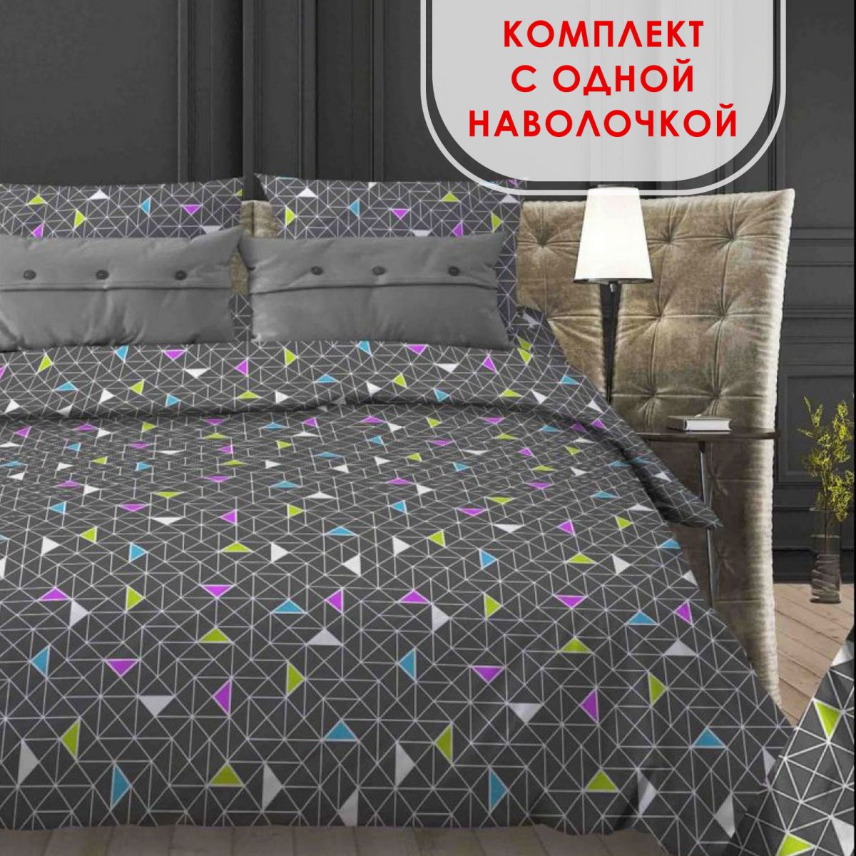 Комплект постельного белья Треугольники темно-серый бязь